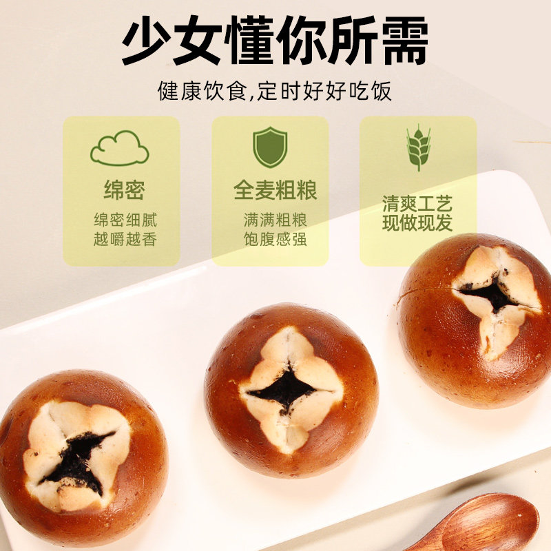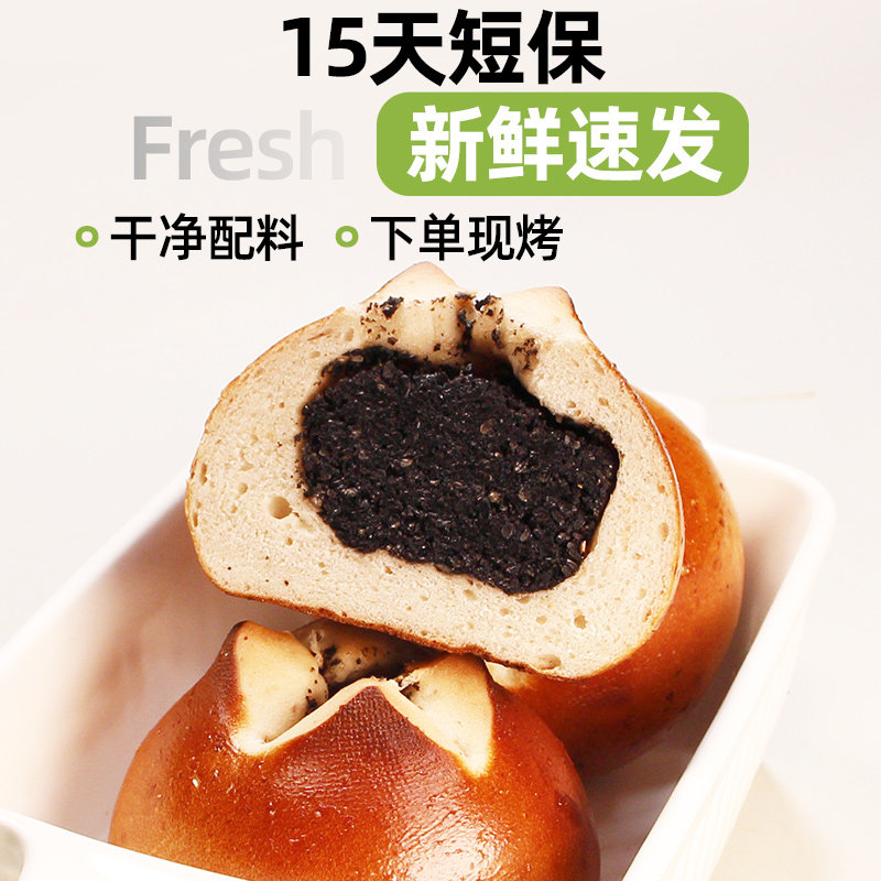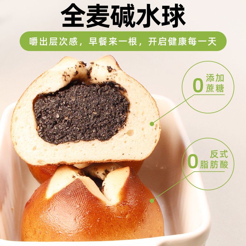 全麦碱水面包球黑芝麻无糖精早餐代餐饱腹减低0零食品脂肪欧包