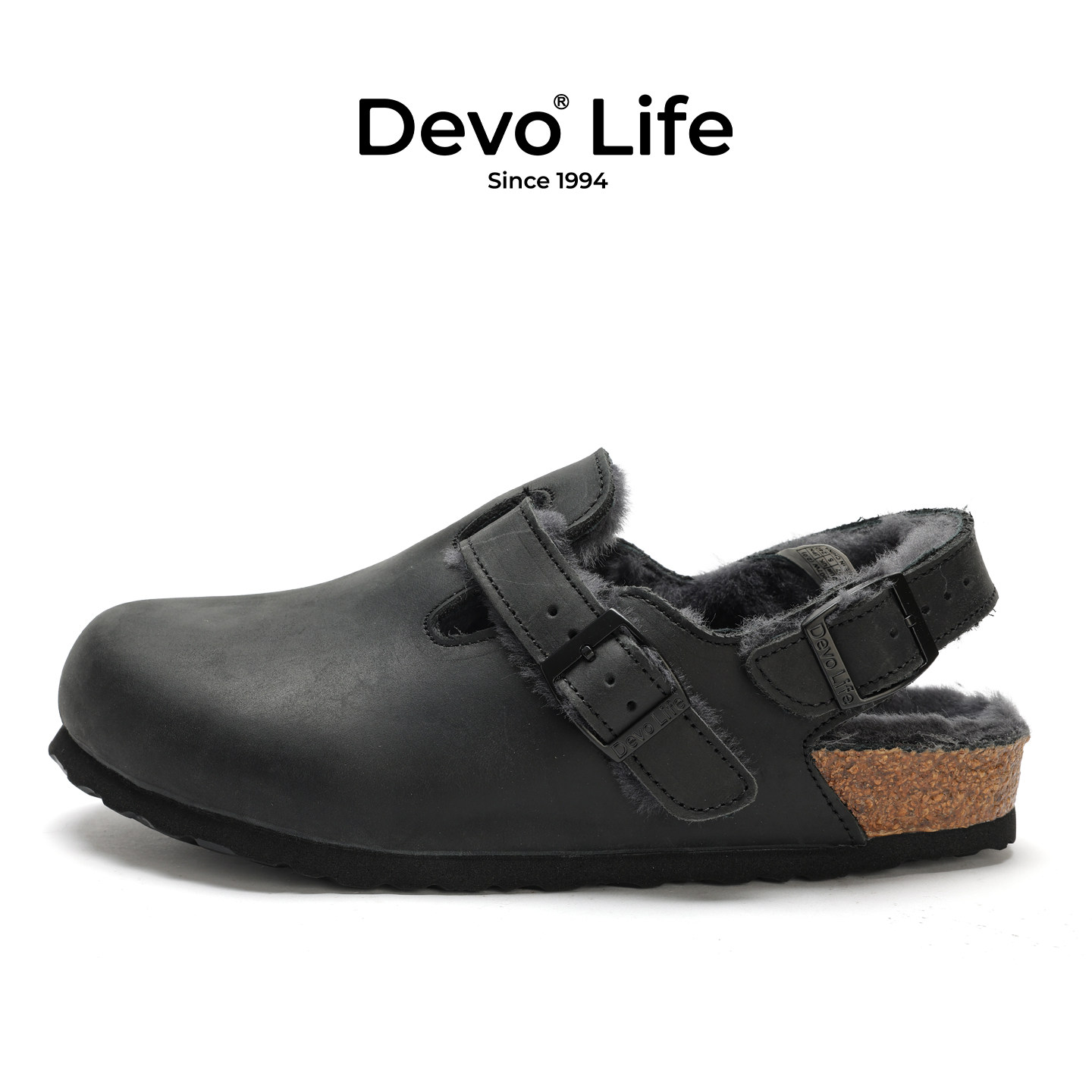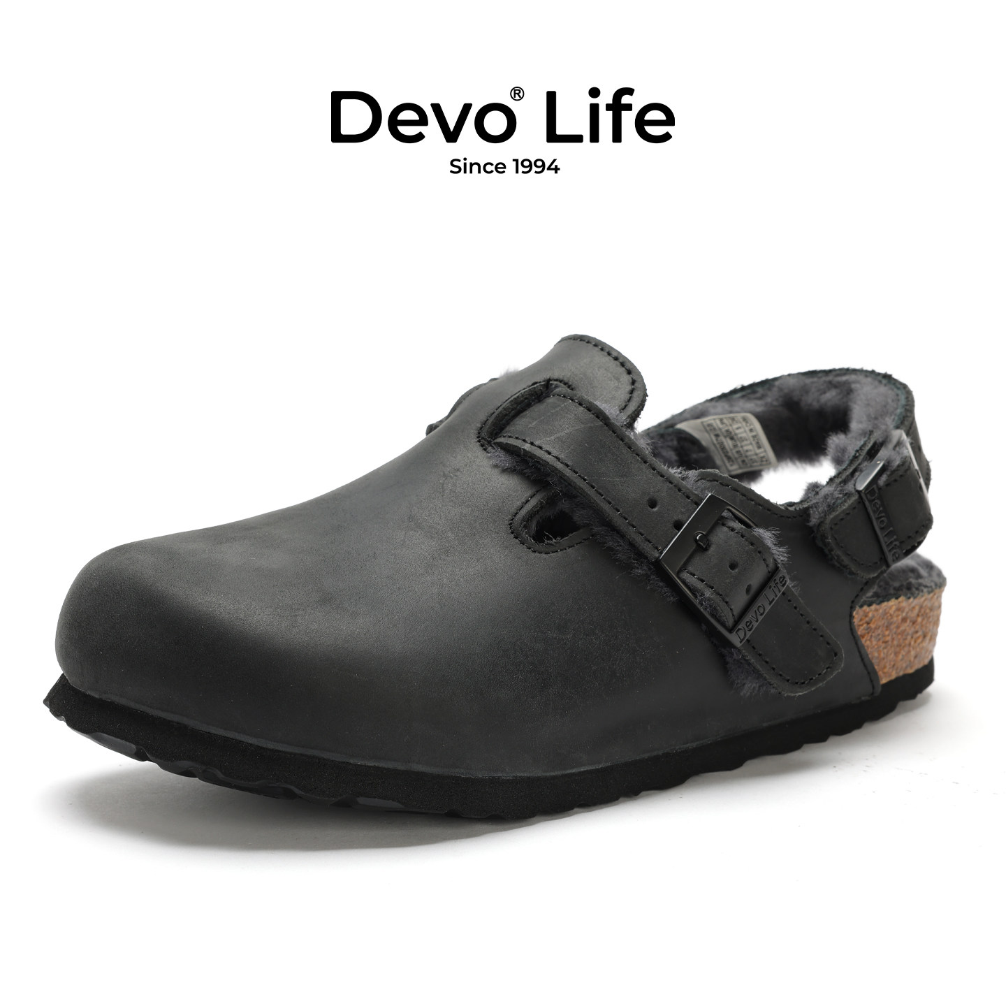 Devo/的沃软木拖鞋包头半包棉鞋加绒加毛外穿秋冬季新款女鞋23007