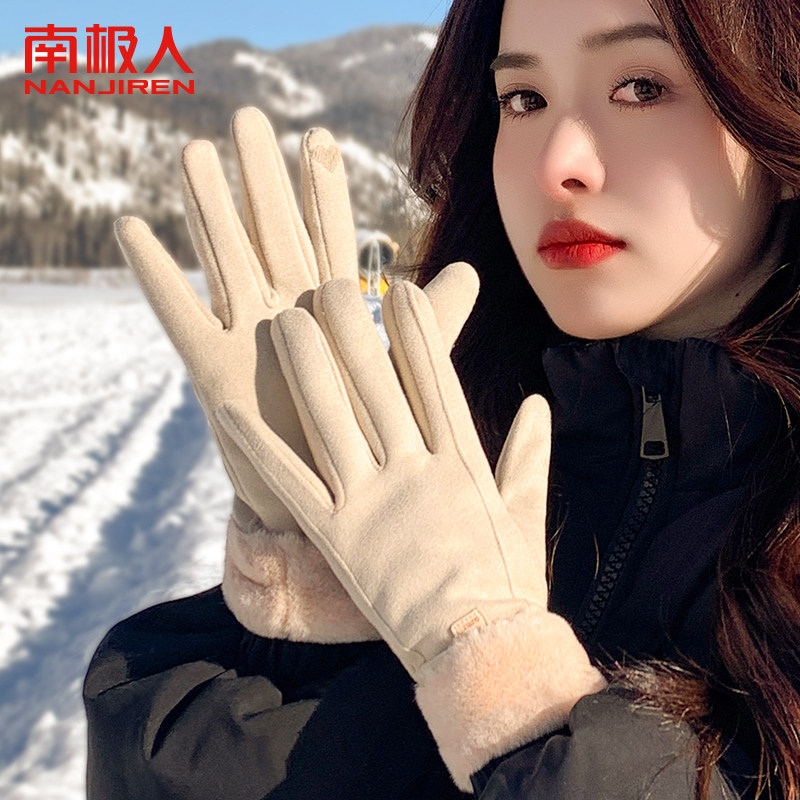 德绒手套女士冬天加绒保暖户外东北开车防寒手套男冬季骑行可触屏