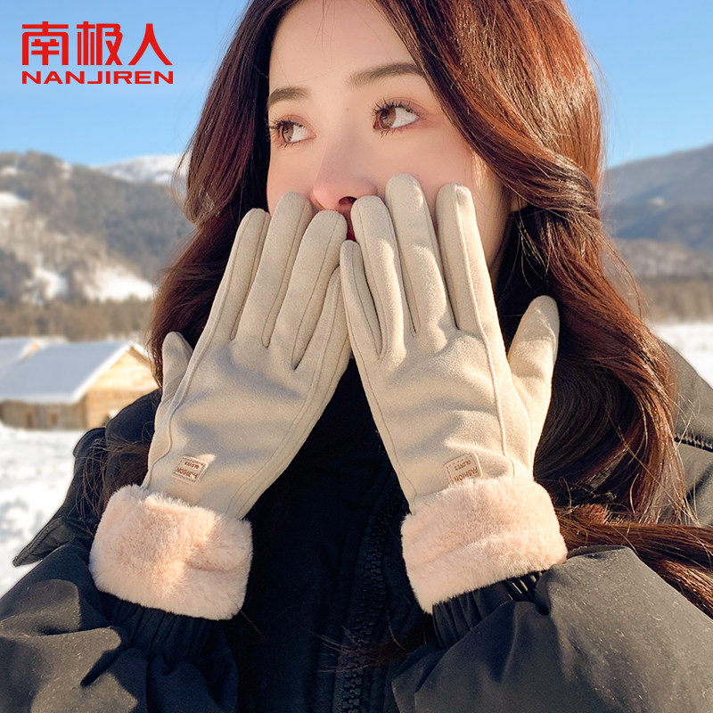 保暖手套女秋冬触屏加厚户外骑行开车德绒防风运动手套防冻男女款