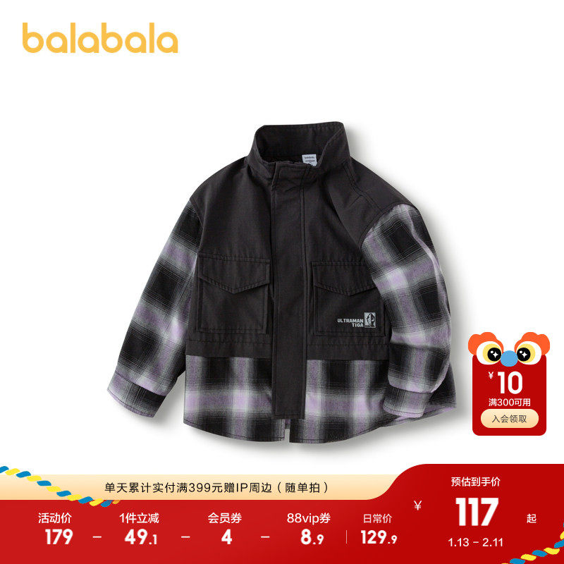 【奥特曼IP】巴拉巴拉童装男童长袖衬衫秋装外套拼接格纹衬衣时尚