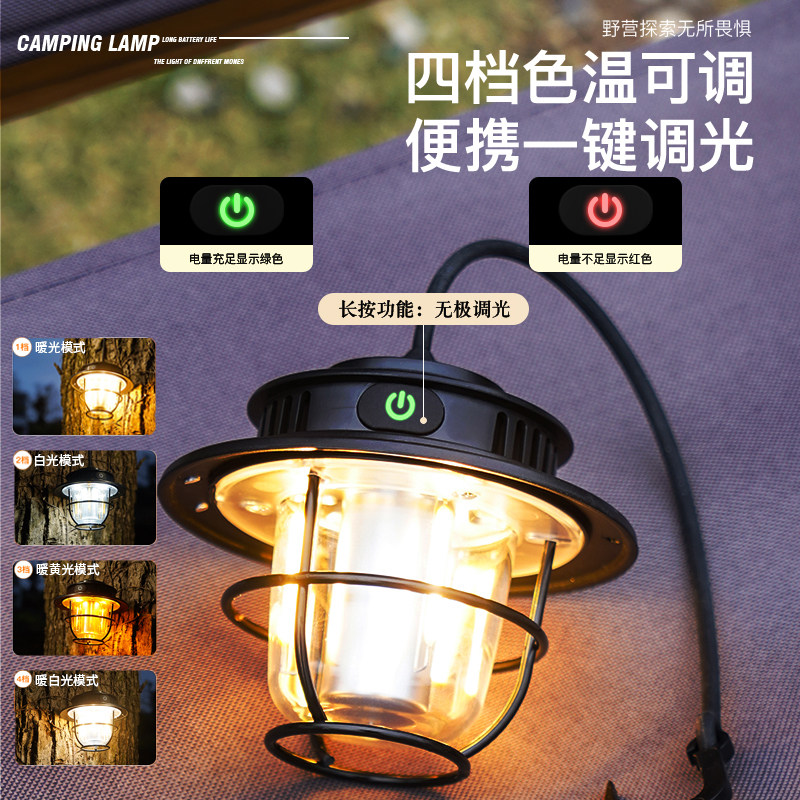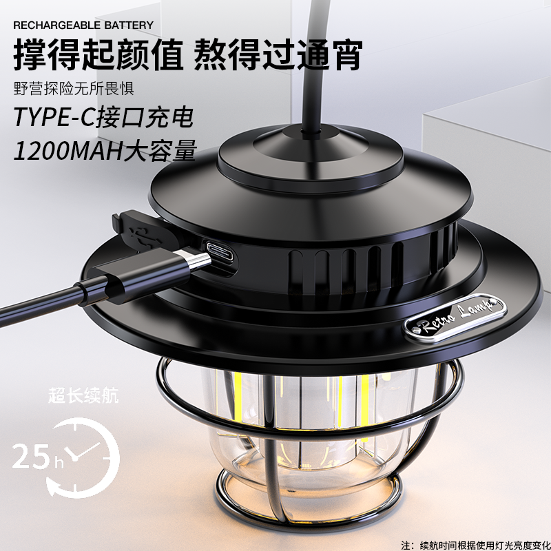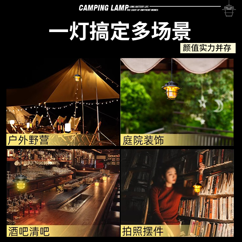 户外露营氛围灯复古松果灯野营挂灯超长续航帐篷充电超亮手提便携