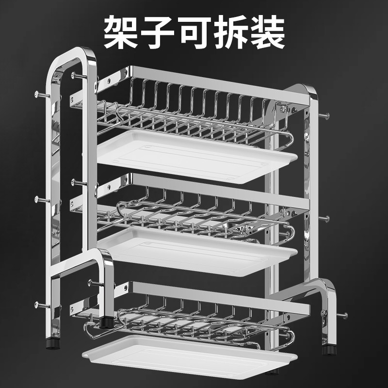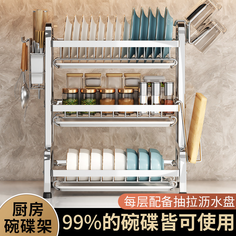 不锈钢碗碟收纳架台面沥水碗盘放碗碟盘碗架厨房置物架多功能碗柜