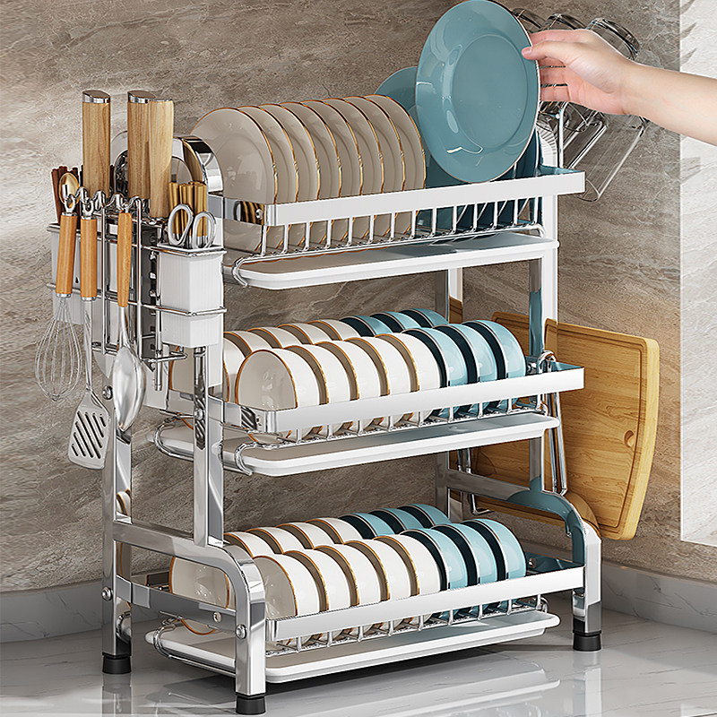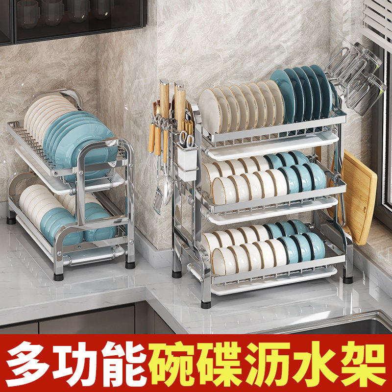 不锈钢厨房碗架沥水收纳架刀架多功能台面放碗放筷盘碟置物篮碗柜