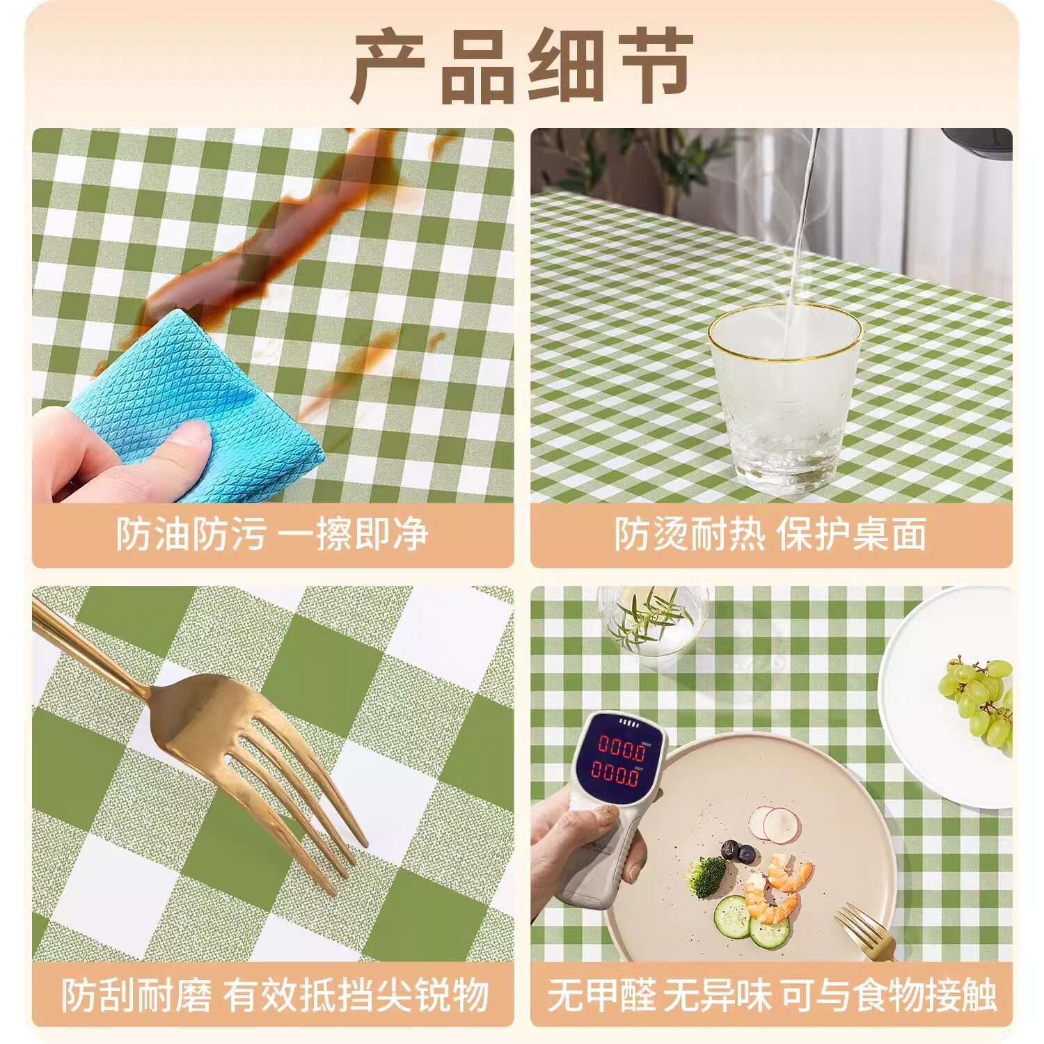 小清新格子桌布防水防油免洗ins风长方形餐桌布茶几桌垫布PVC防烫