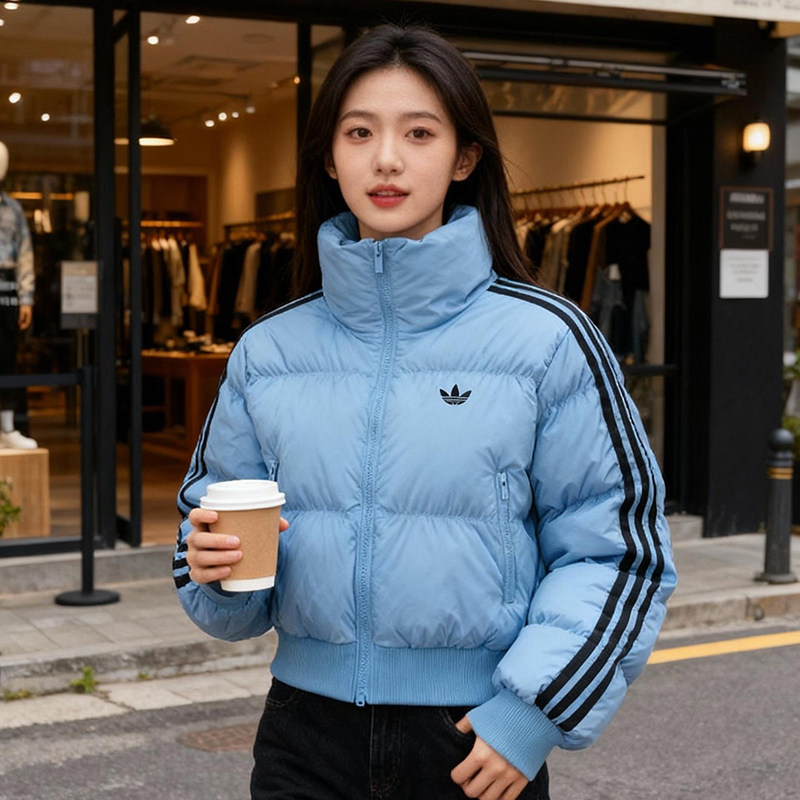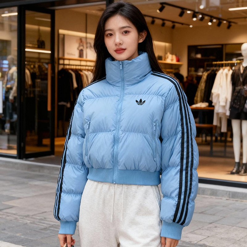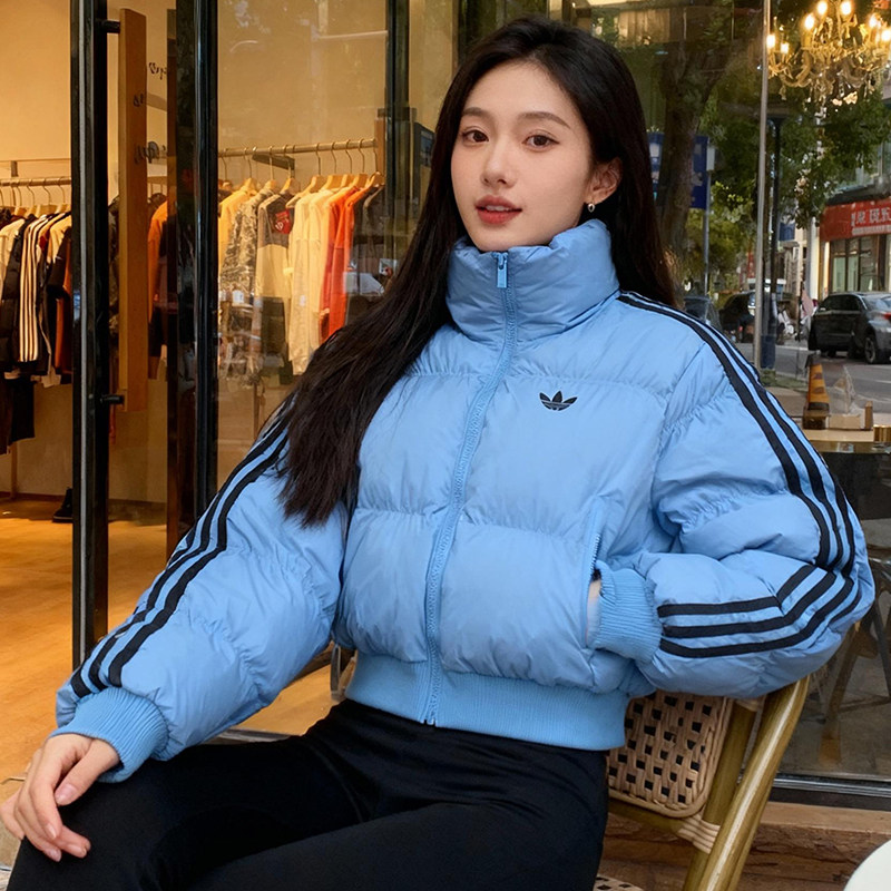 阿迪达斯三叶草短款立领棉服女装秋冬新款保暖棉衣外套防风运动服