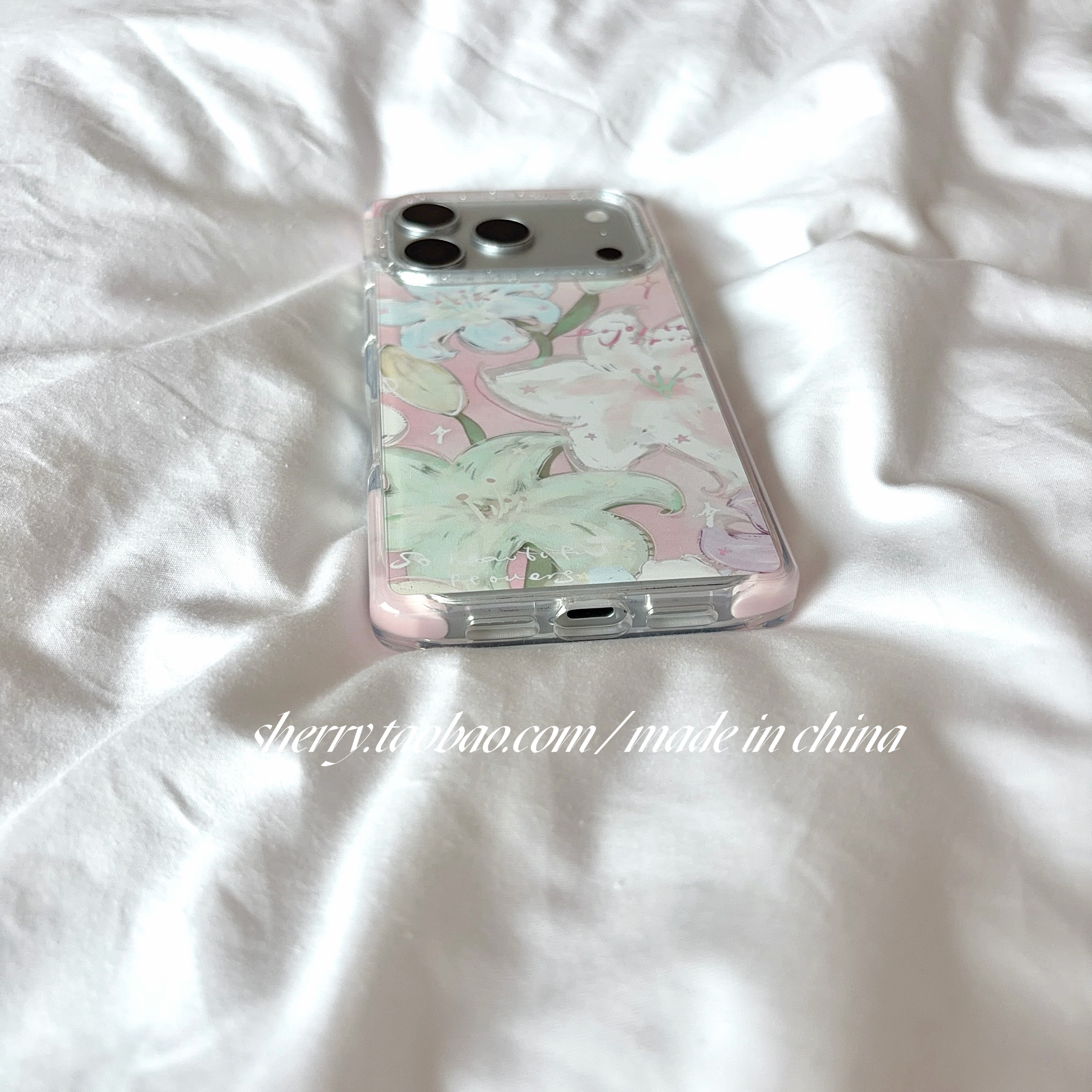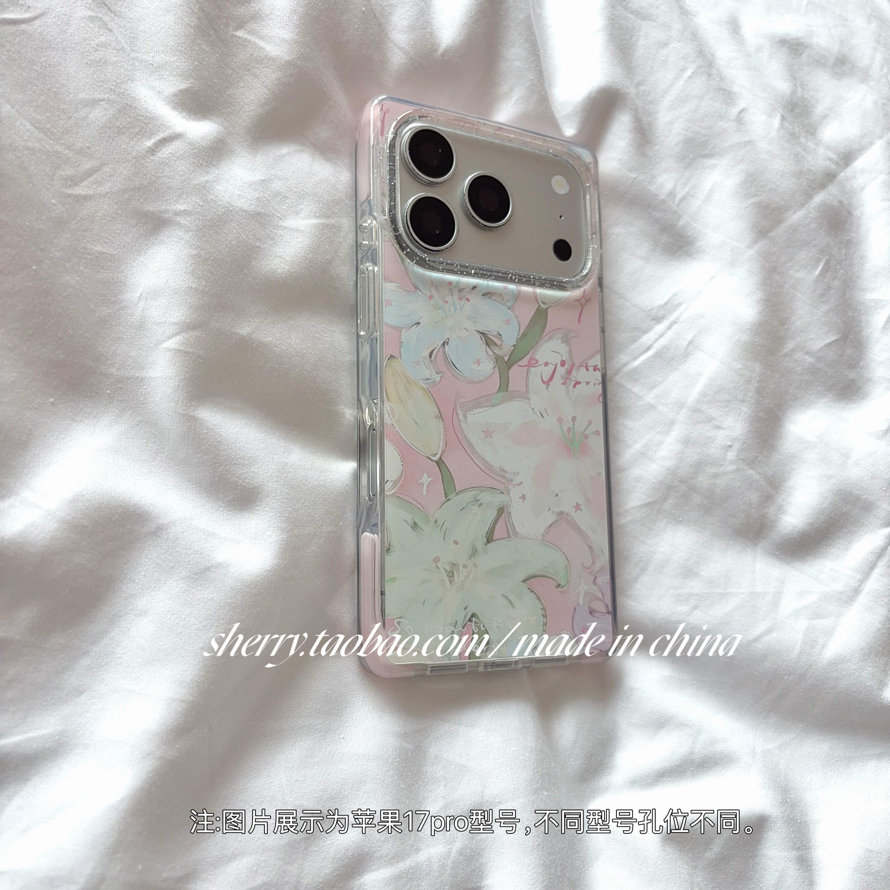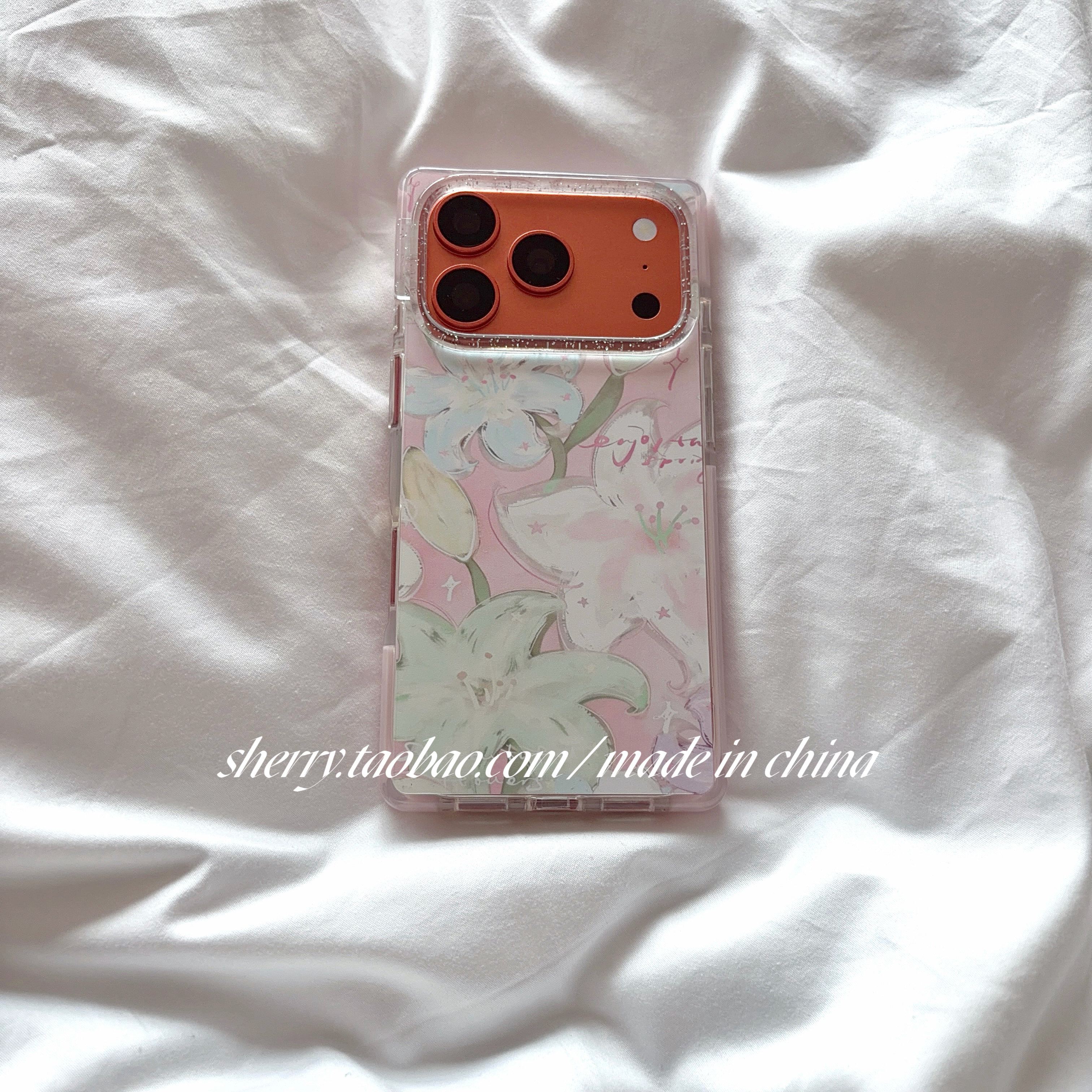 SHERRY*ins风春夏油画粉绿蓝百合花适用于苹果17ProMax手机壳iPhone16Pro小众少女心15简约小清新温柔甜美