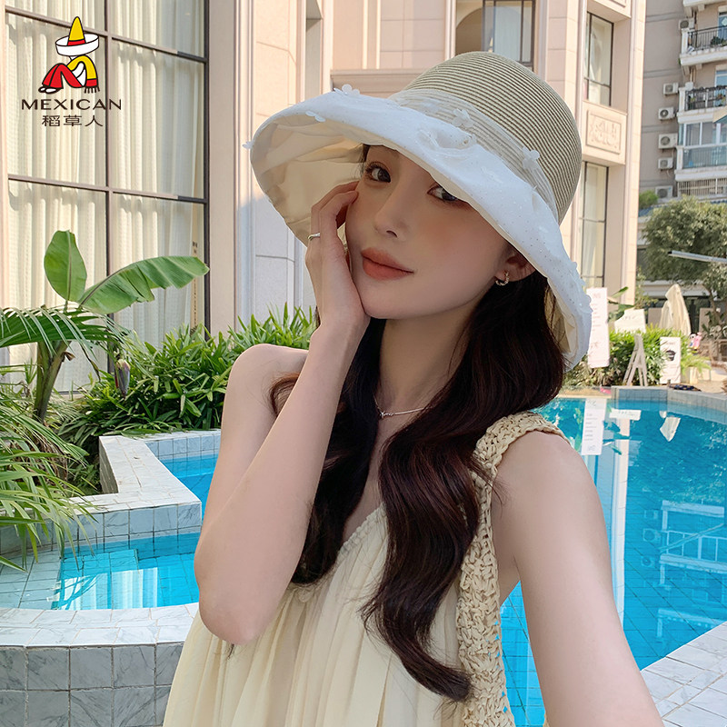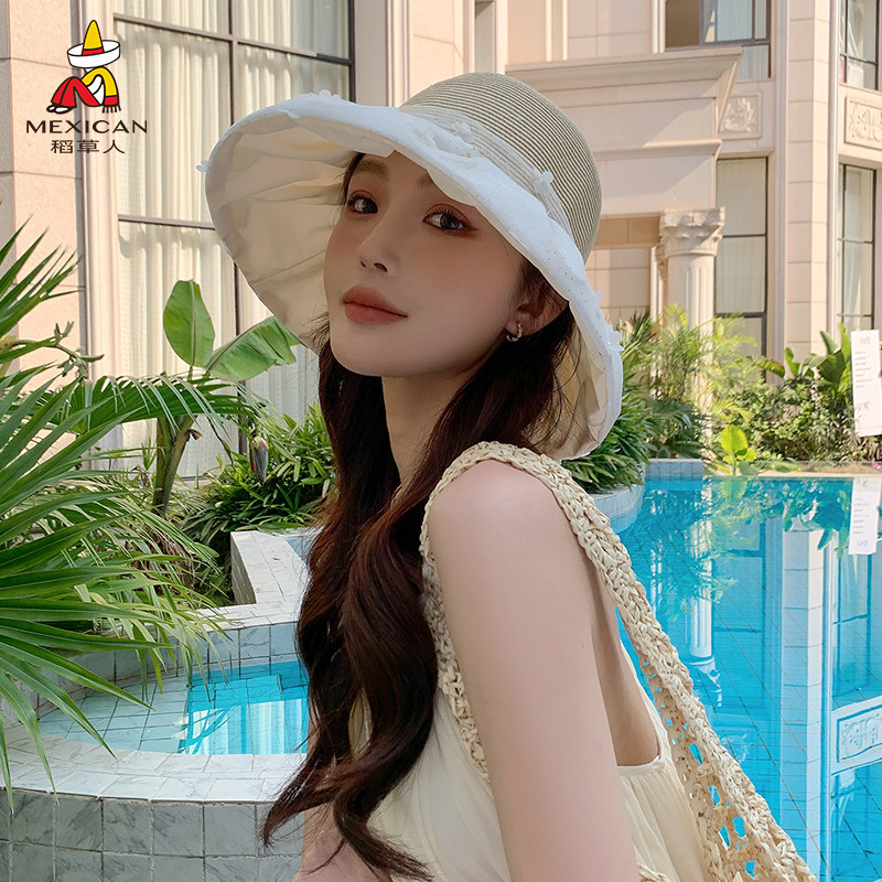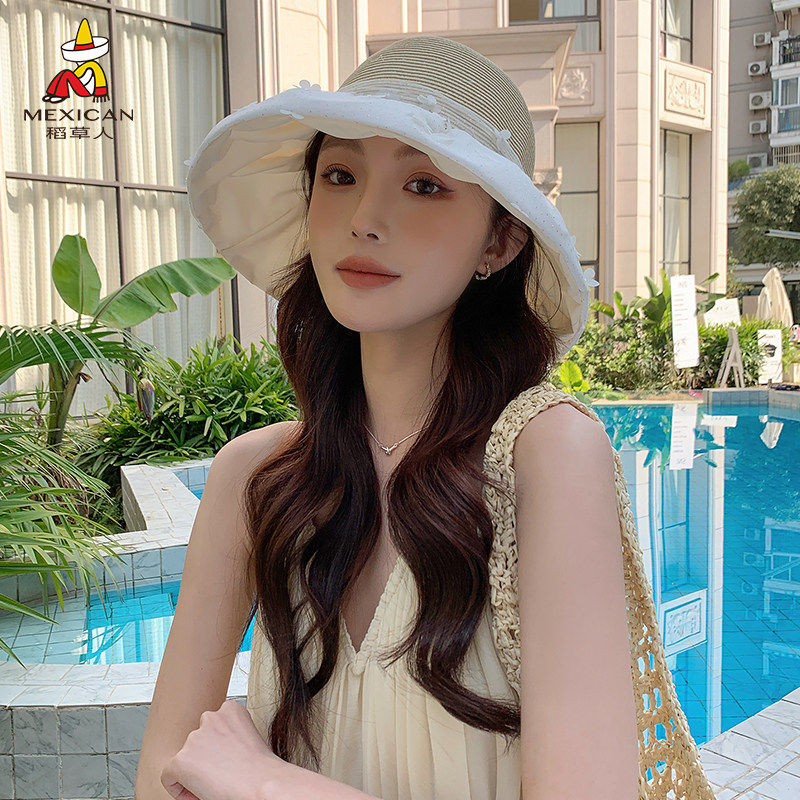 稻草人蝴蝶结大帽檐草编帽女夏季防晒遮阳帽度假沙滩出游防紫外线