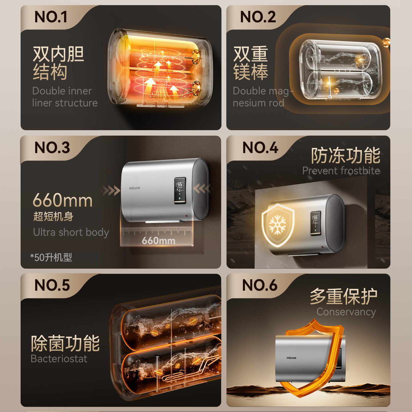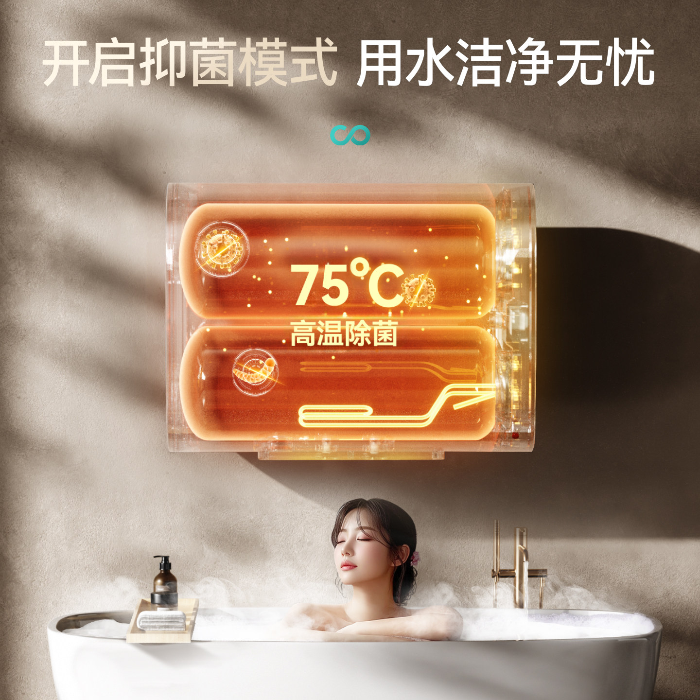 四季沐歌超薄电热水器家用卫生间储水式速热一级节能速热扁桶双胆