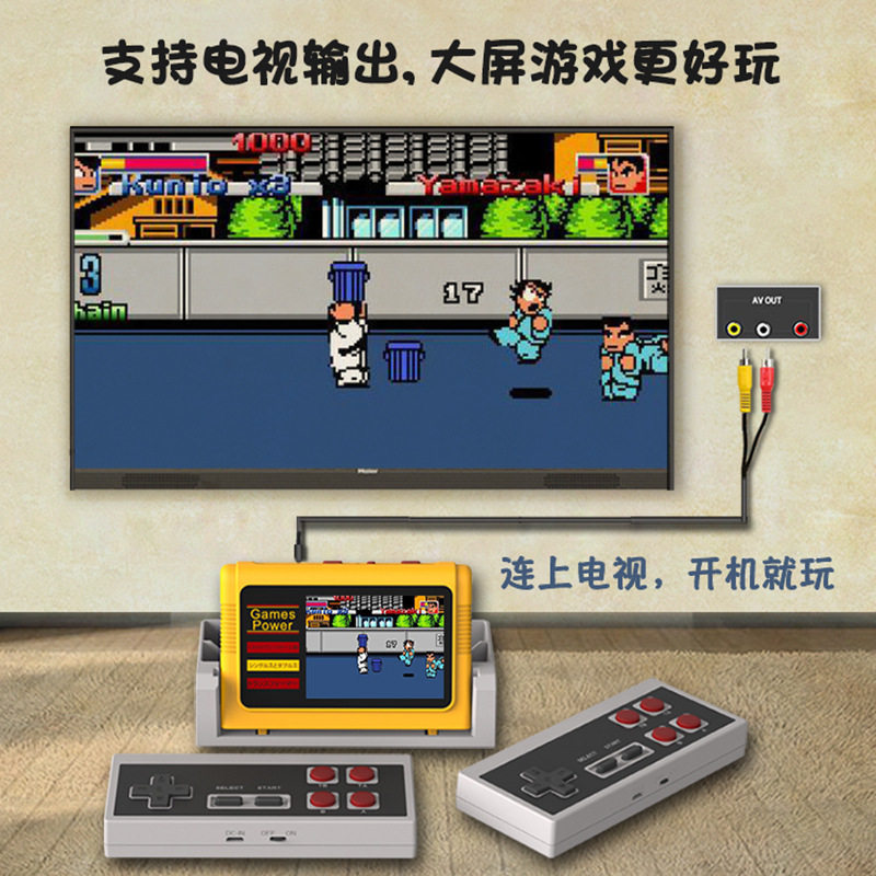 经典黄卡多功能游戏机K20家用3寸彩屏卡带双人无线手柄FC