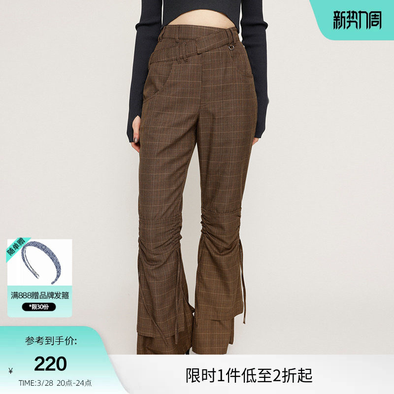 SLY 春季复古港风Y2K抽褶微喇裤高腰休闲裤030HAR31-3681