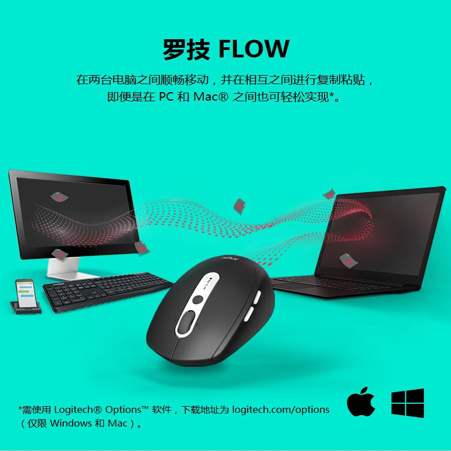 罗技M585无线蓝牙鼠标办公家用优联双模多设备跨屏带2.4G接收器