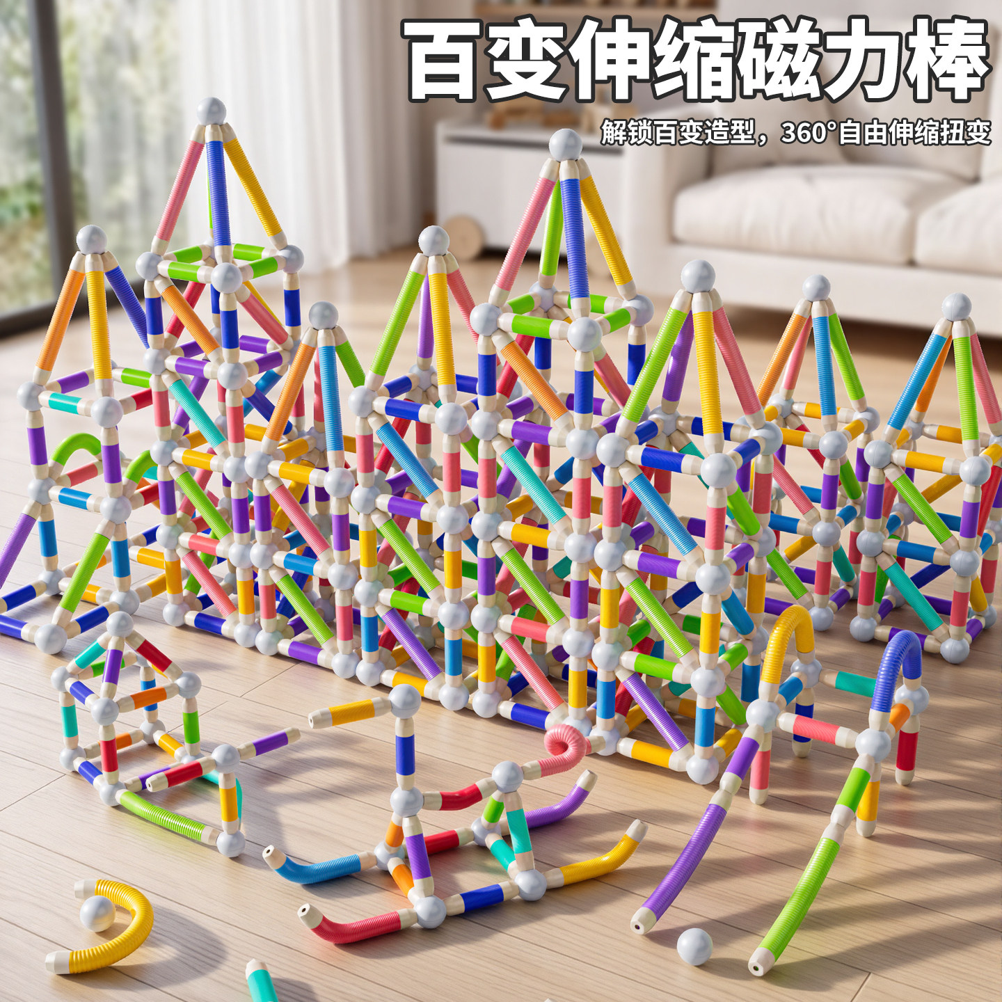 百变磁力棒片儿童益智拼装磁铁积木男女孩0到3岁宝宝早教玩具拼图
