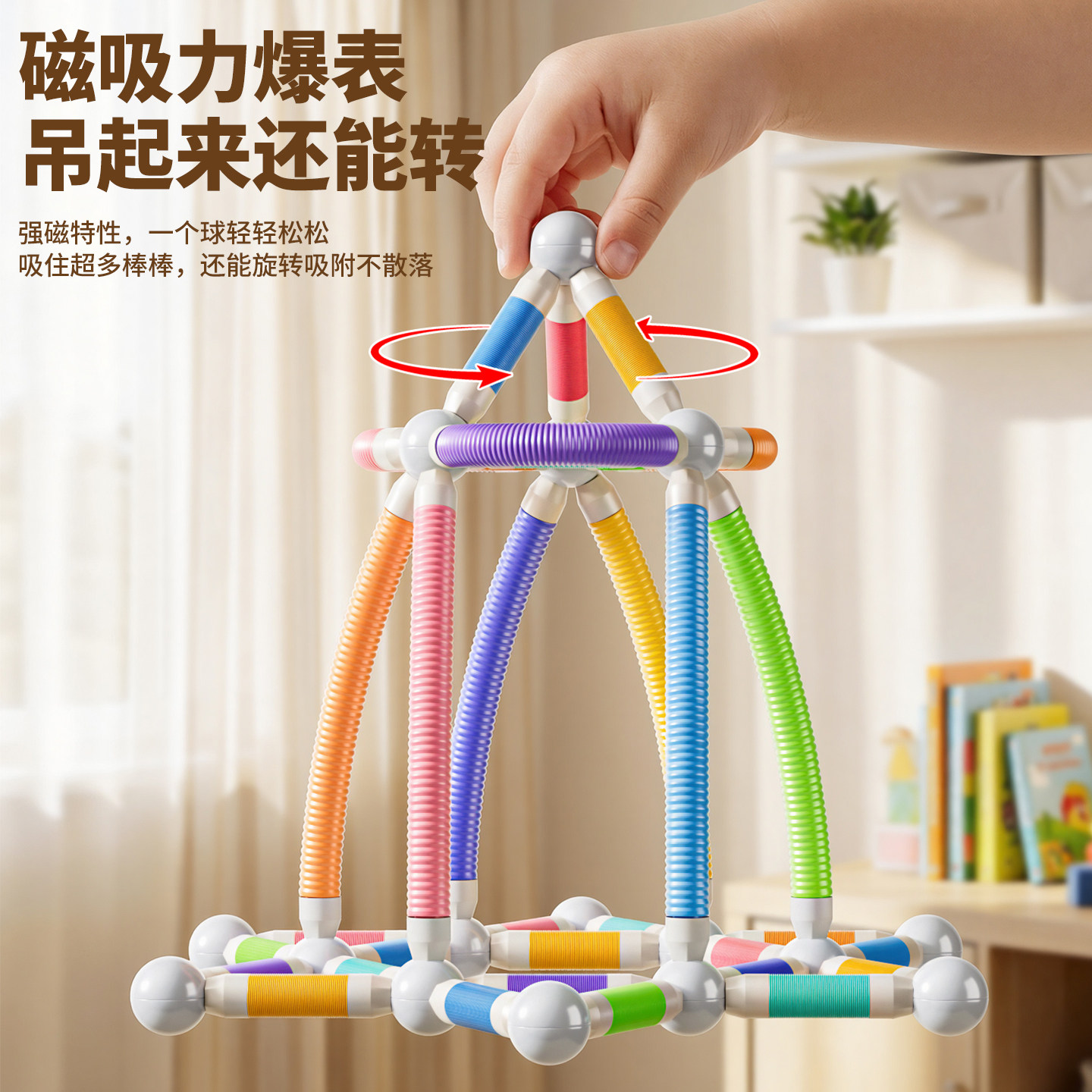 磁力片儿童益智玩具积木磁铁吸铁石棒磁性女男孩纯智力拼装多功能
