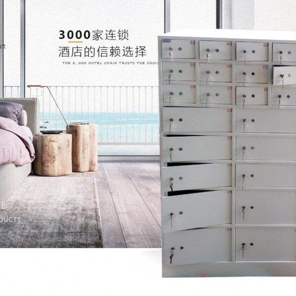 酒店前台客人使用双钥匙开启保险柜 保密室二十二格门储藏保险箱