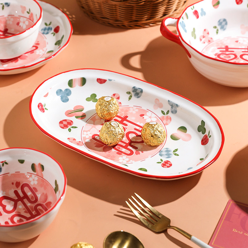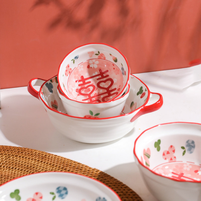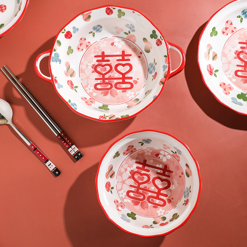 舍里新婚喜碗结婚礼物碗盘陶瓷餐具套装中式喜庆面碗盘子2025新款