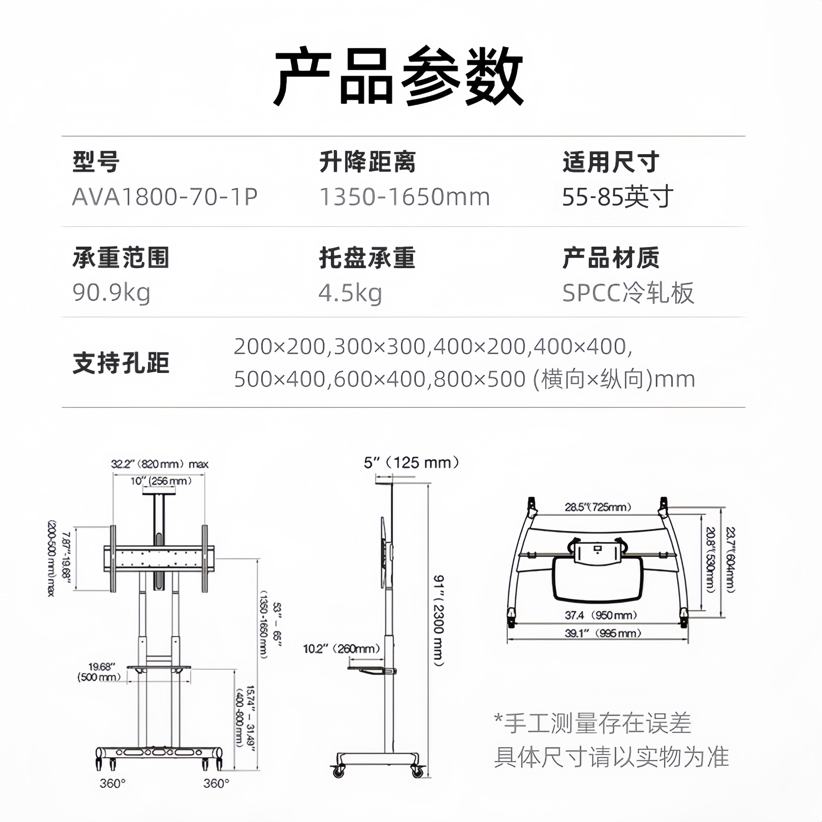 NB AVA1800-70-1P(55-85寸)通用移动电视支架视频会议推车支架