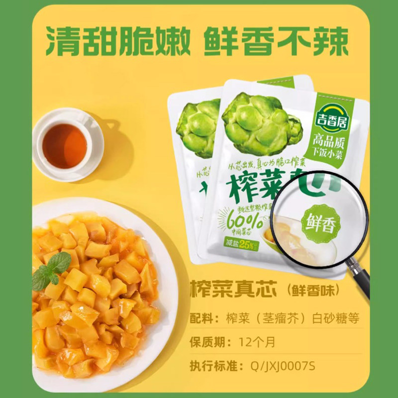 吉香居榨菜真芯咸菜小袋开味下饭菜小菜萝卜真芯学生榨菜佐餐小菜