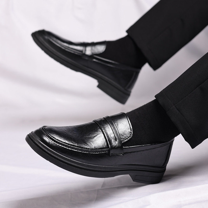 夏季季新款皮鞋男高端商务休闲鞋透气男士皮鞋男隐形增高豆豆鞋子
