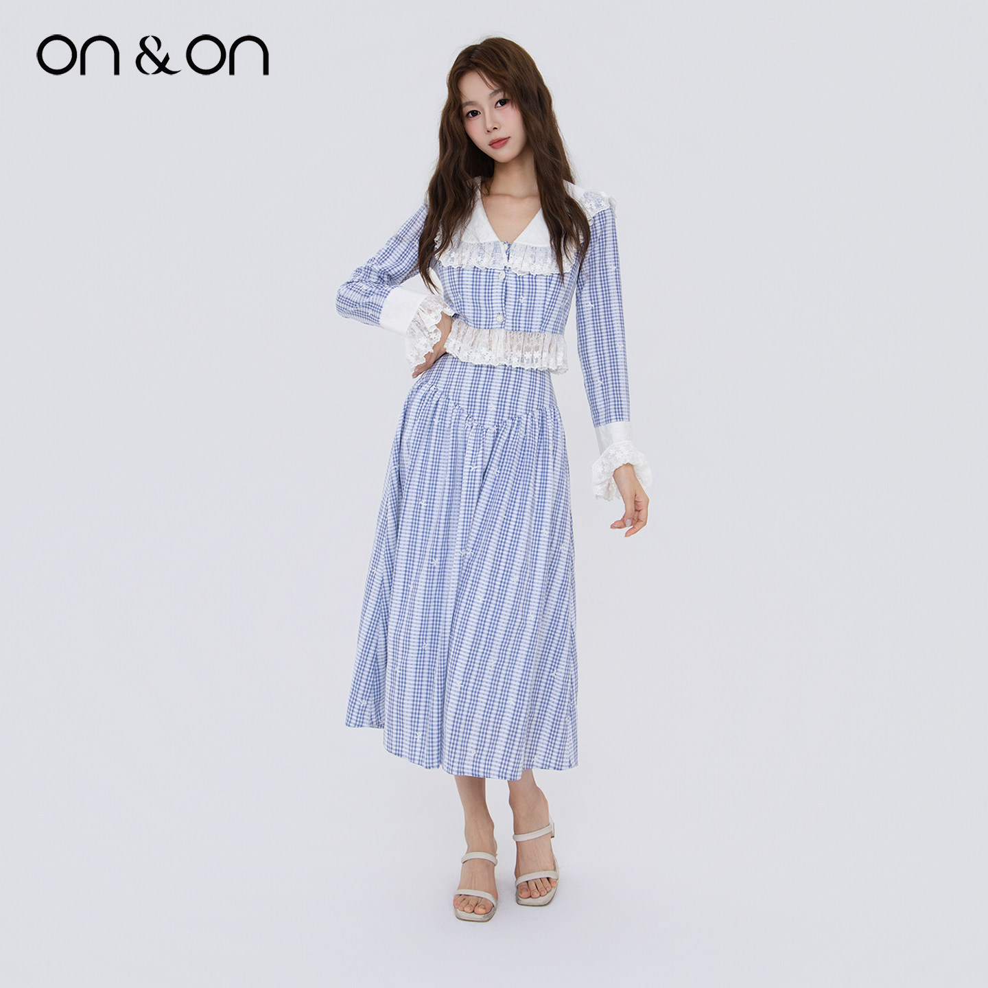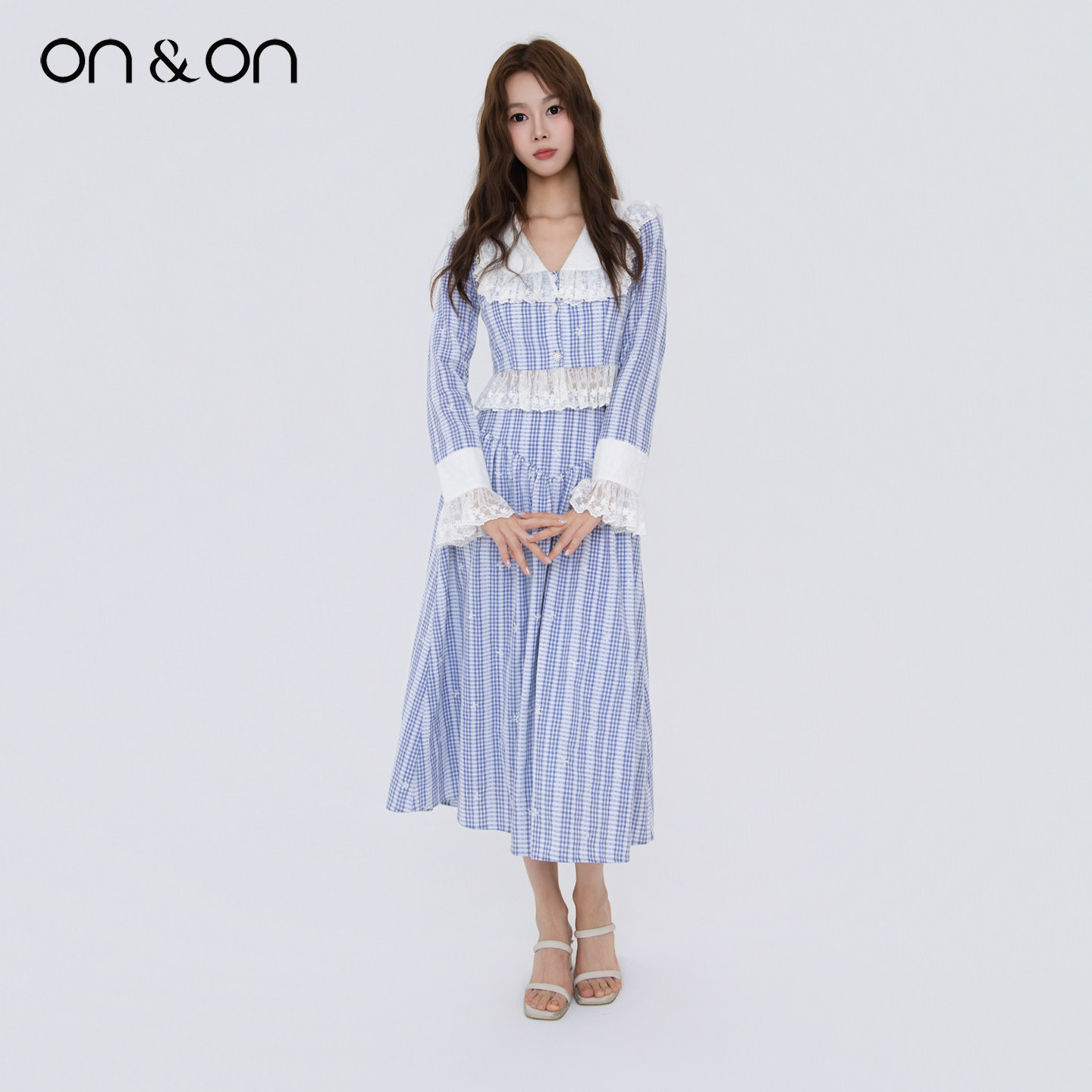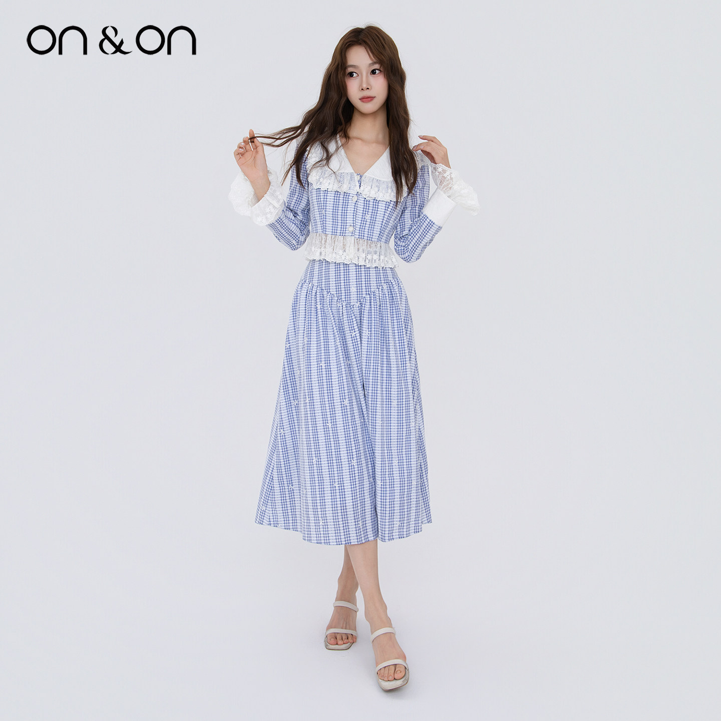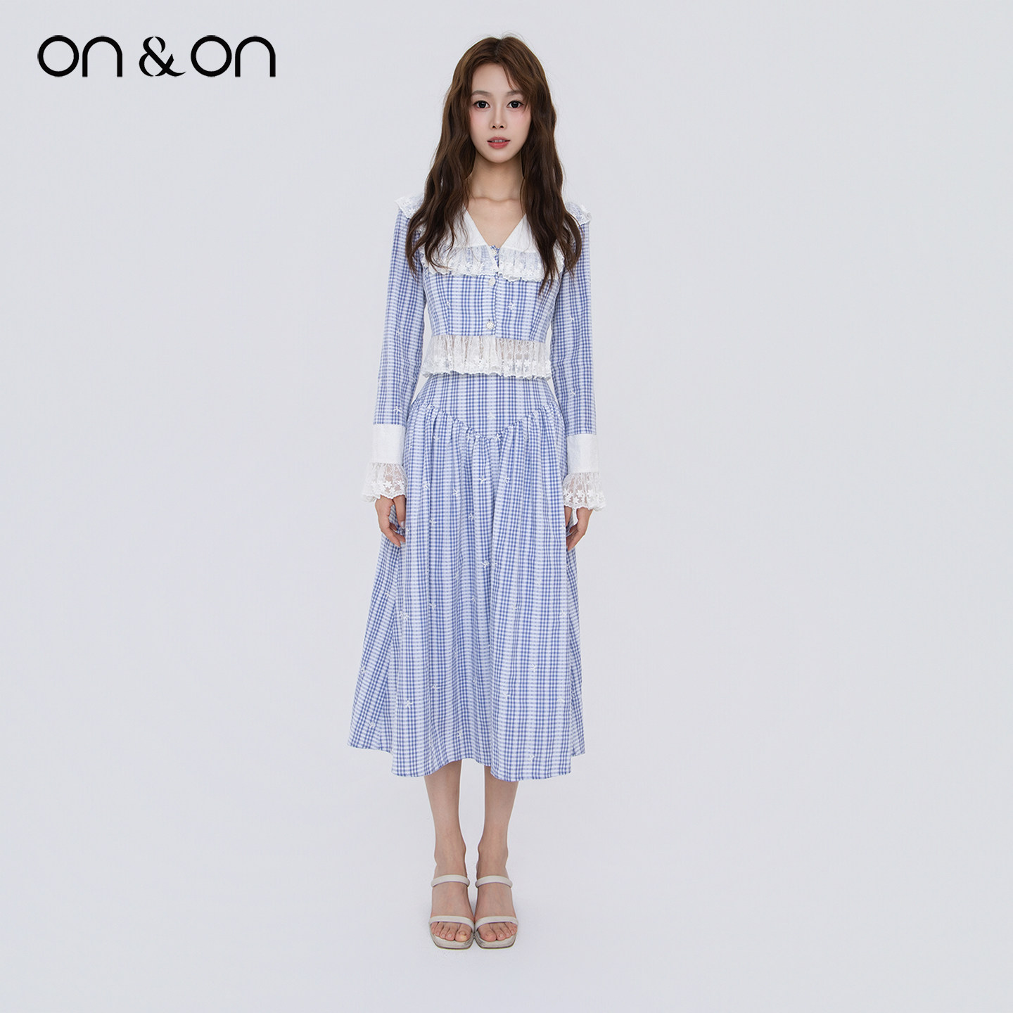 ON&ON/安乃安2025秋冬新款韩系撞色海军领时尚气质立体格纹套装