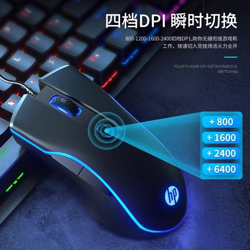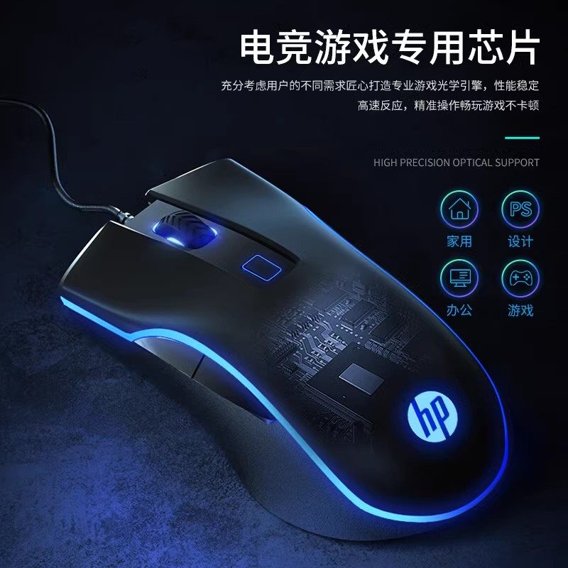HP/惠普M200有线鼠标静音电脑即插即用游戏RGB光学传感家用办公