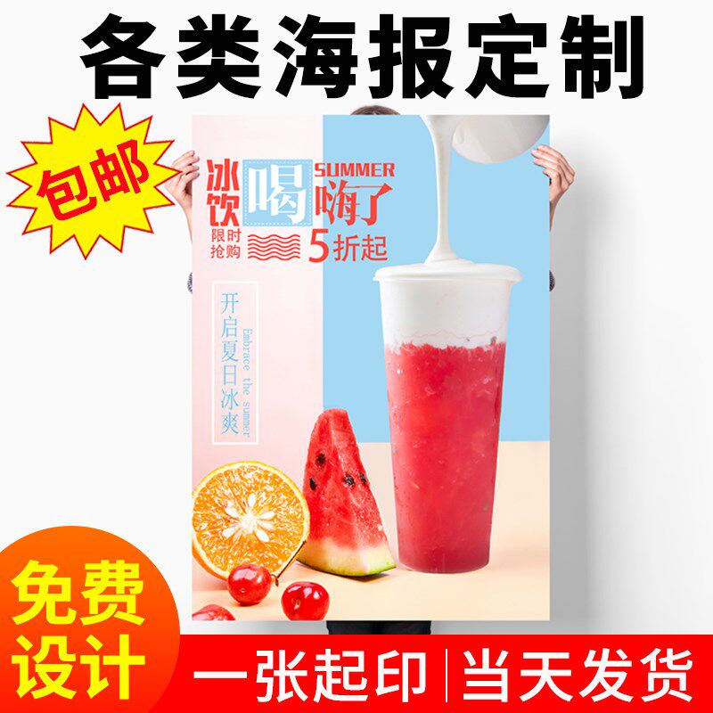 海报定制背胶贴纸广告免费设计打印D制J作墙贴宣传画宣传单页印刷
