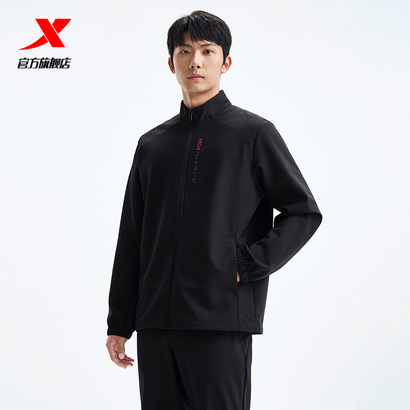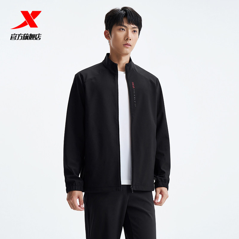 特步外套男秋冬新款男装运动上衣立领夹克开衫卫衣休闲加绒运动服