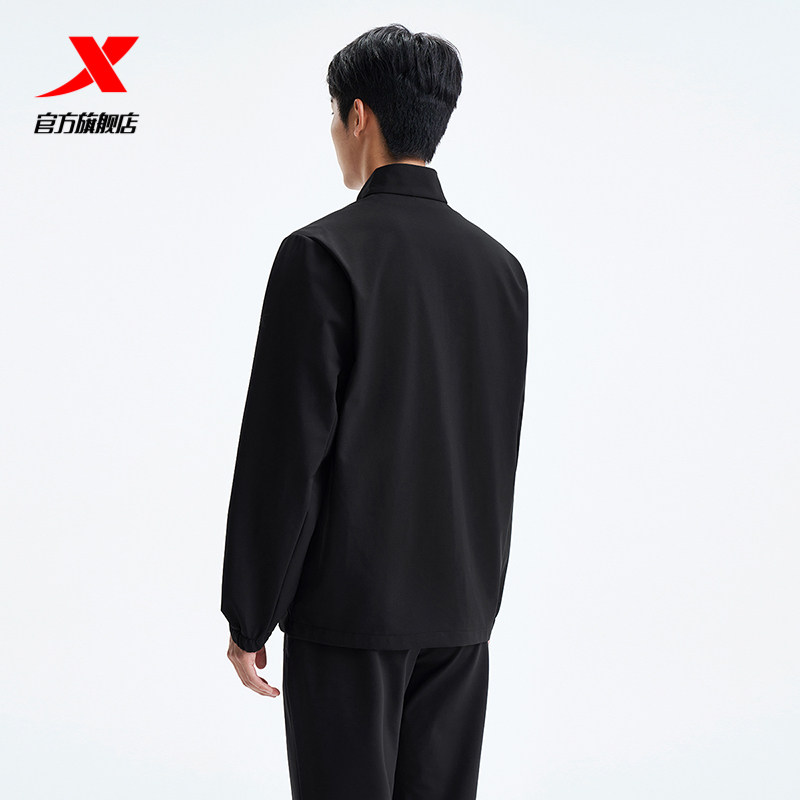 特步加绒外套男2025年秋冬新款官方休闲运动上衣立领男装梭织风衣