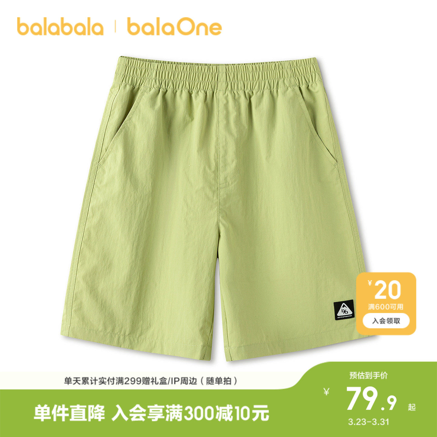 防泼水、凉感功能,宽松膝上裤型