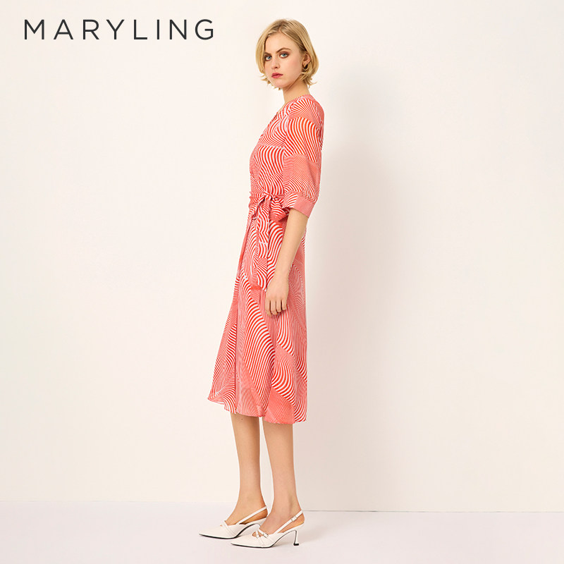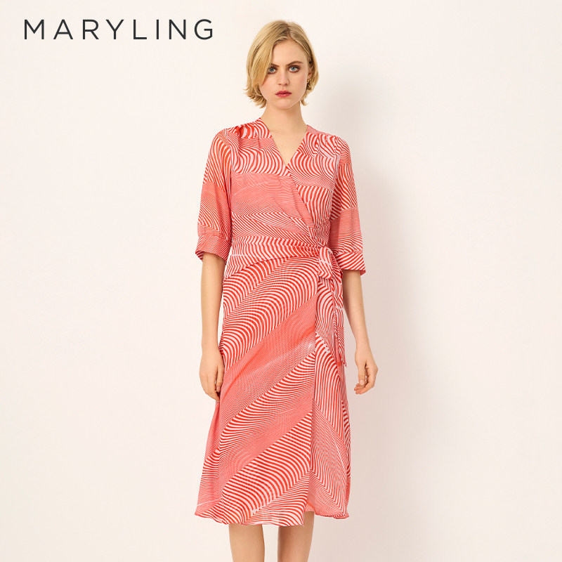 【欧普艺术】MARYLING玛俪琳25夏季新品V领印花连衣裙A1FBW62480