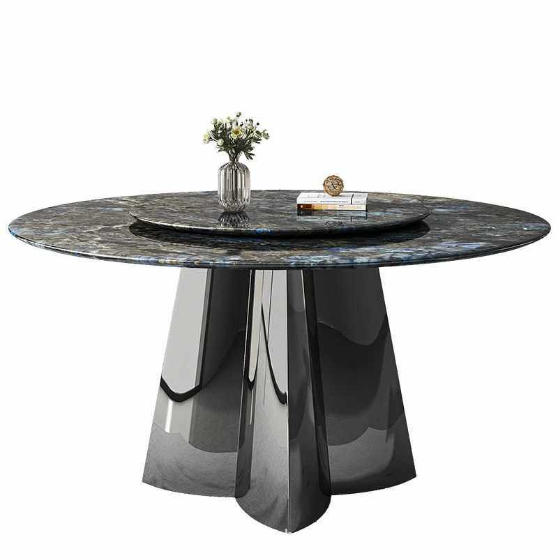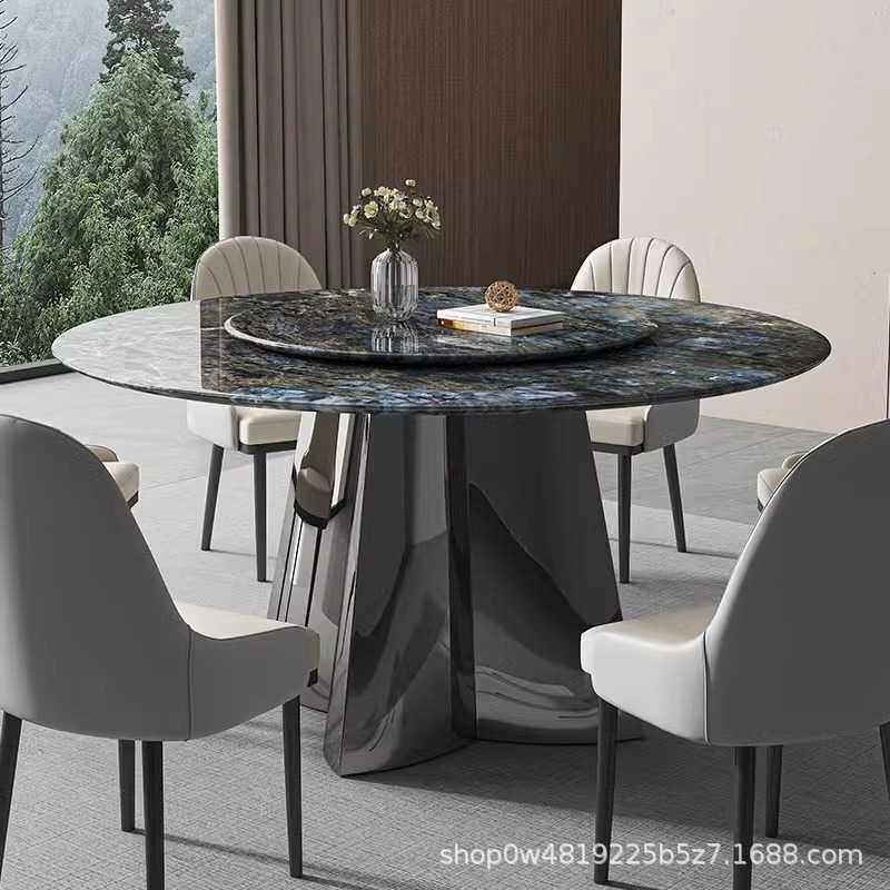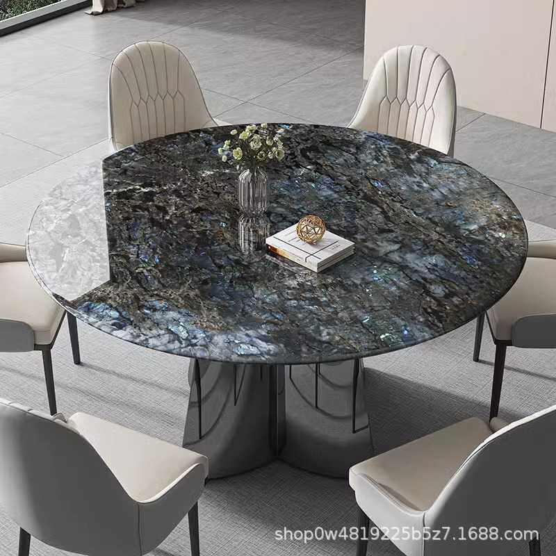 天然大理石圆餐桌奢石现代轻奢客厅高端蓝翡翠微晶石超晶石餐桌椅