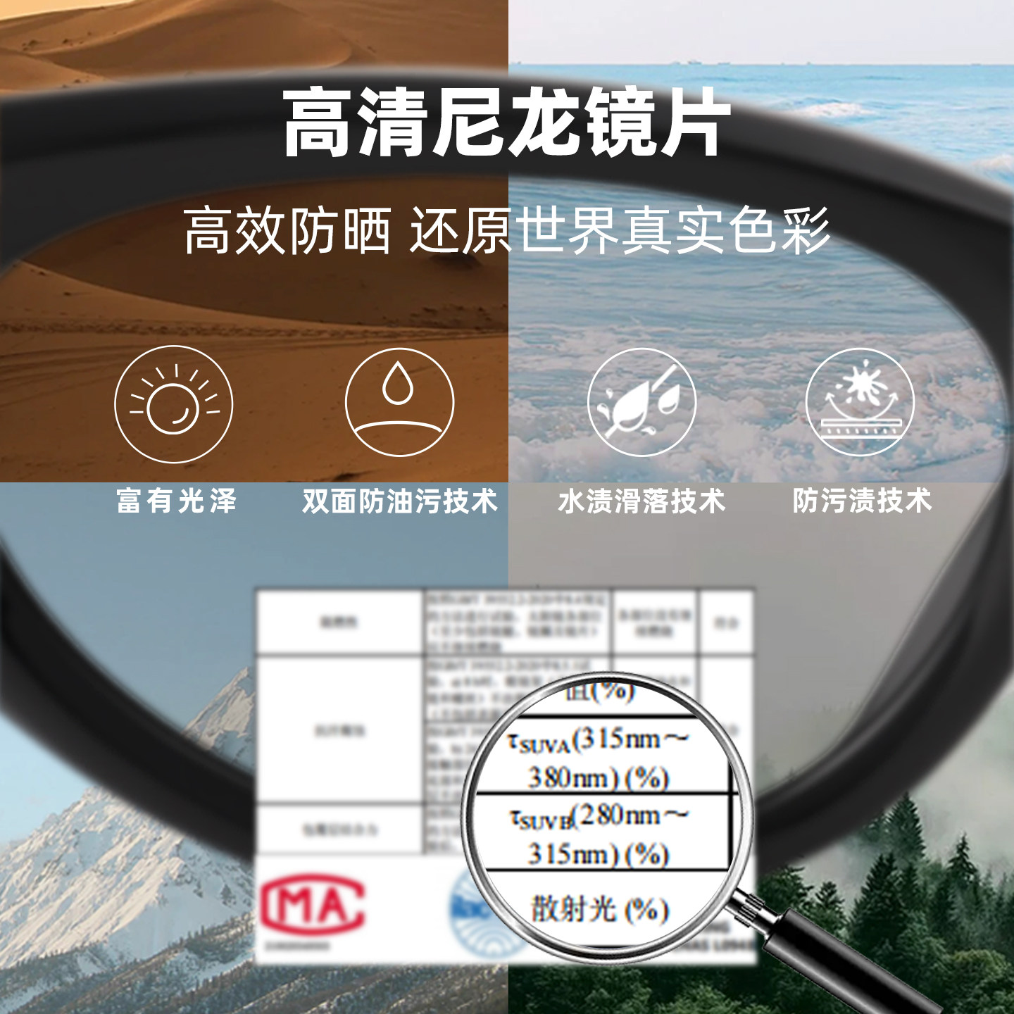 高清尼龙镜片UV400 双面防油污技术