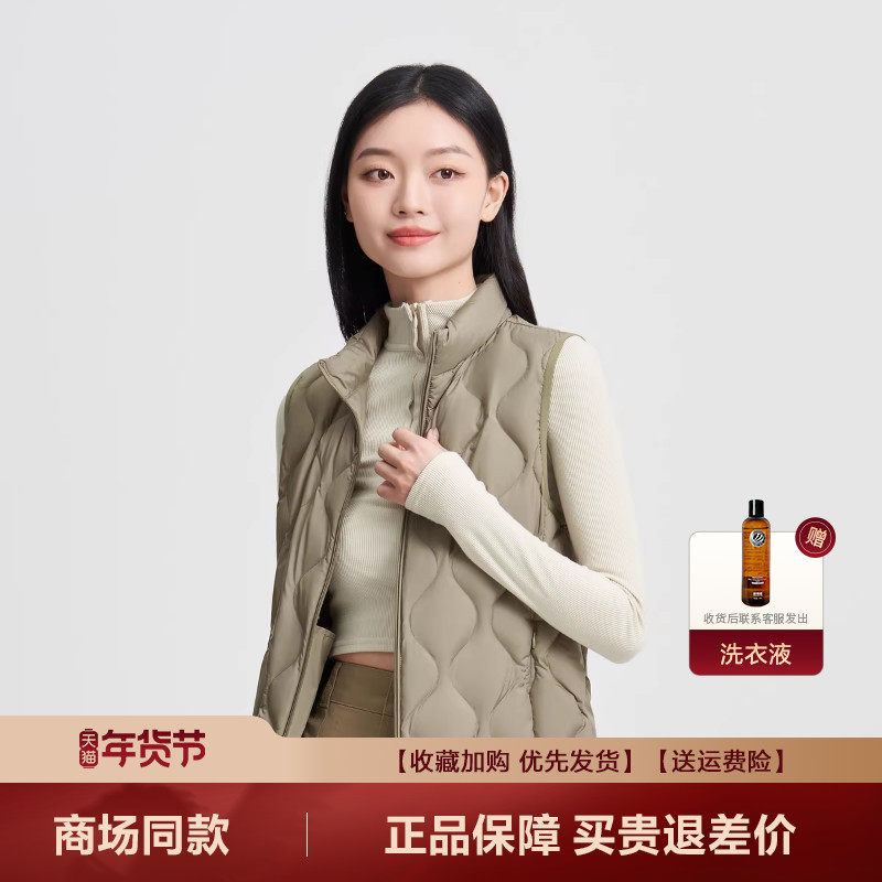 骆驼女装羽绒服马甲2025秋冬白色轻薄短款外穿保暖加厚背心外套女