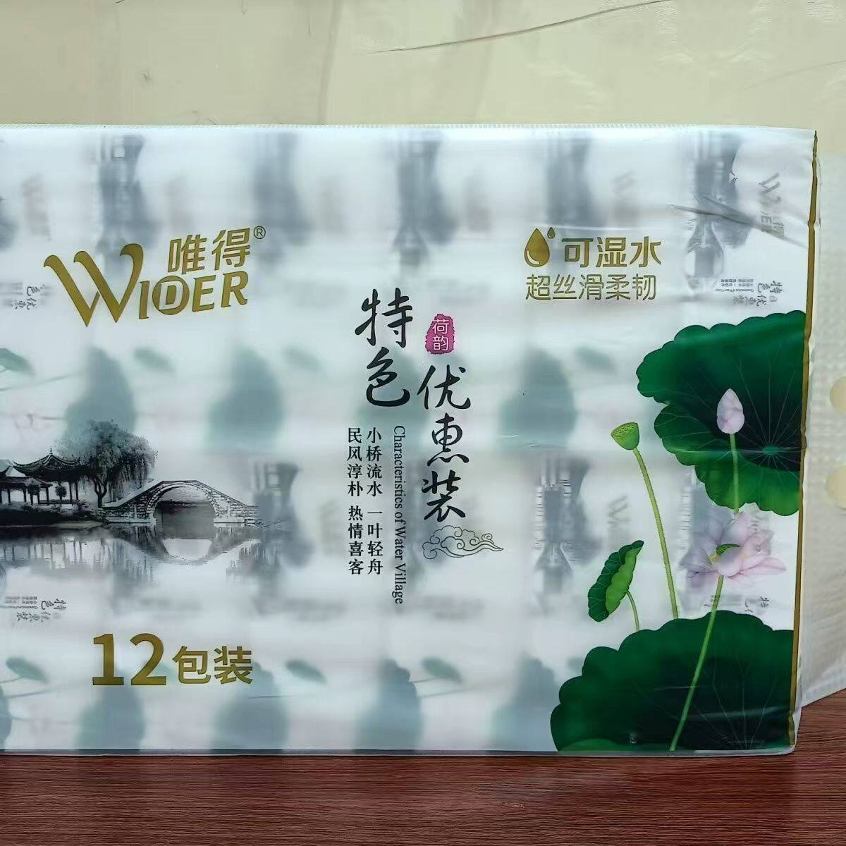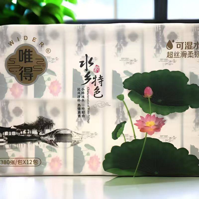 唯得水乡特色抽纸12包实惠装家用抽取式可湿水卫生纸母婴适用抽纸