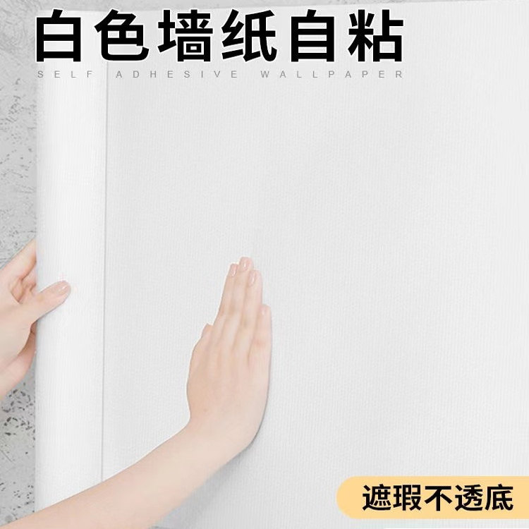 腻子白墙纸自粘防水防潮电视背景墙面家用卧室白色壁纸遮丑墙贴纸