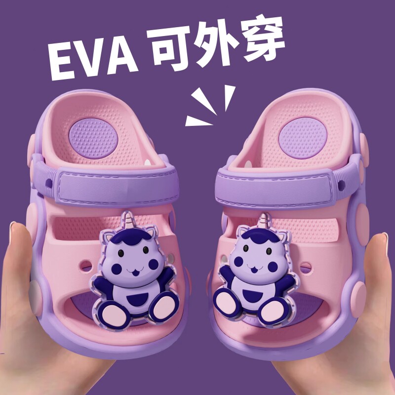 女童包头洞洞鞋儿童夏季宝宝室内软底婴幼儿防滑拖鞋卡通男童凉鞋
