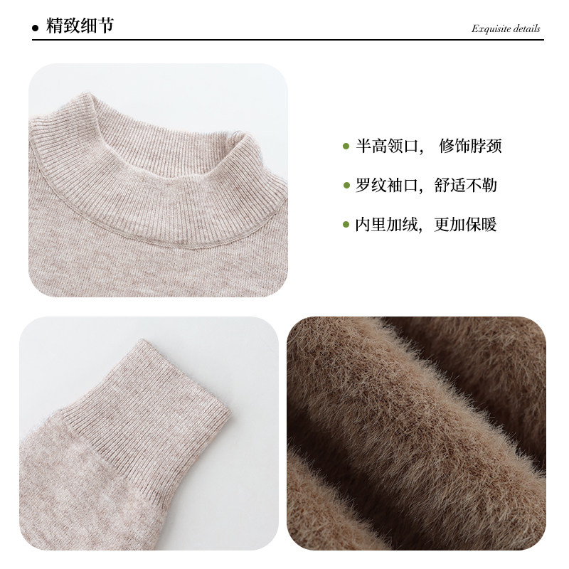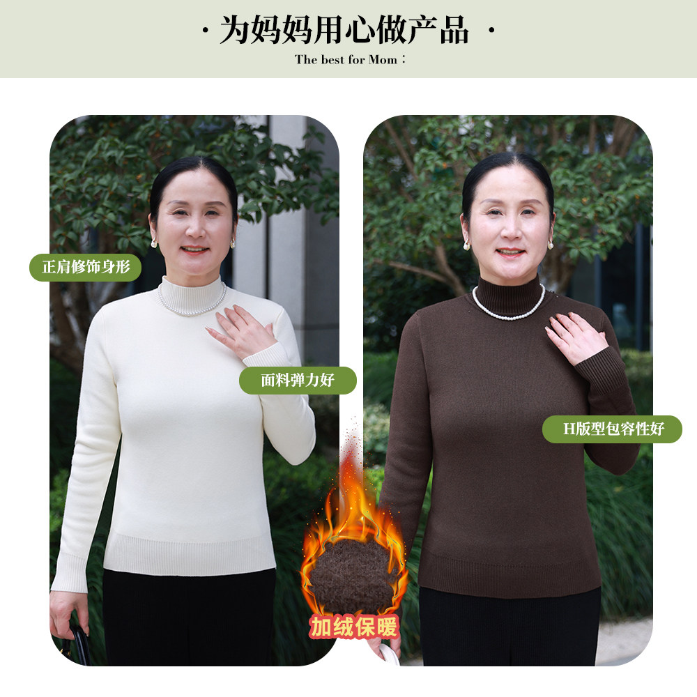 【江南故事】中老年妈妈纯色半高领百搭亲肤针织上衣秋冬打底衫女