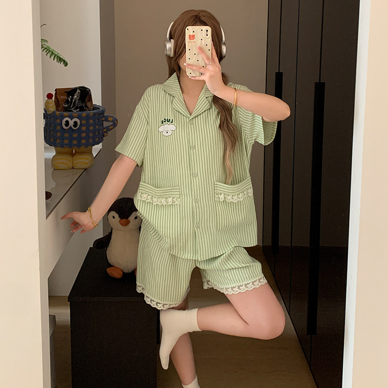 云朵棉纱布睡衣女夏季短袖短裤套装甜美小熊女学生外穿开衫家居服