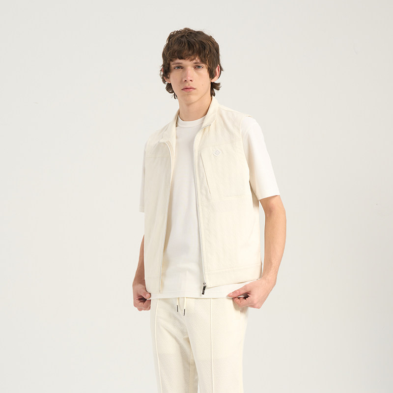 RARE威雅男装 春夏新款经典百搭马甲男士白色立领休闲马甲