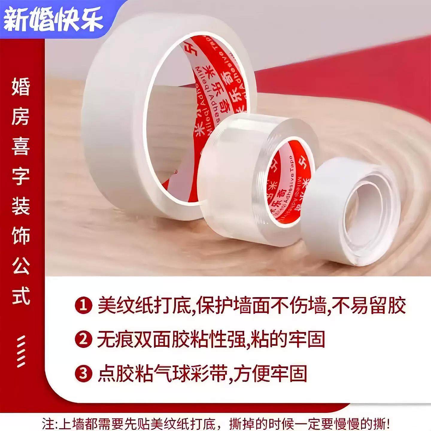 结婚不伤墙方案无痕双面胶美纹纸加纳米胶多功能魔力胶婚房用品
