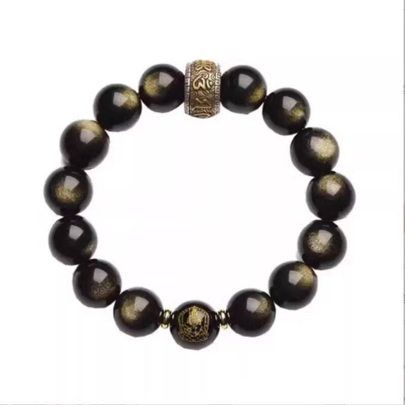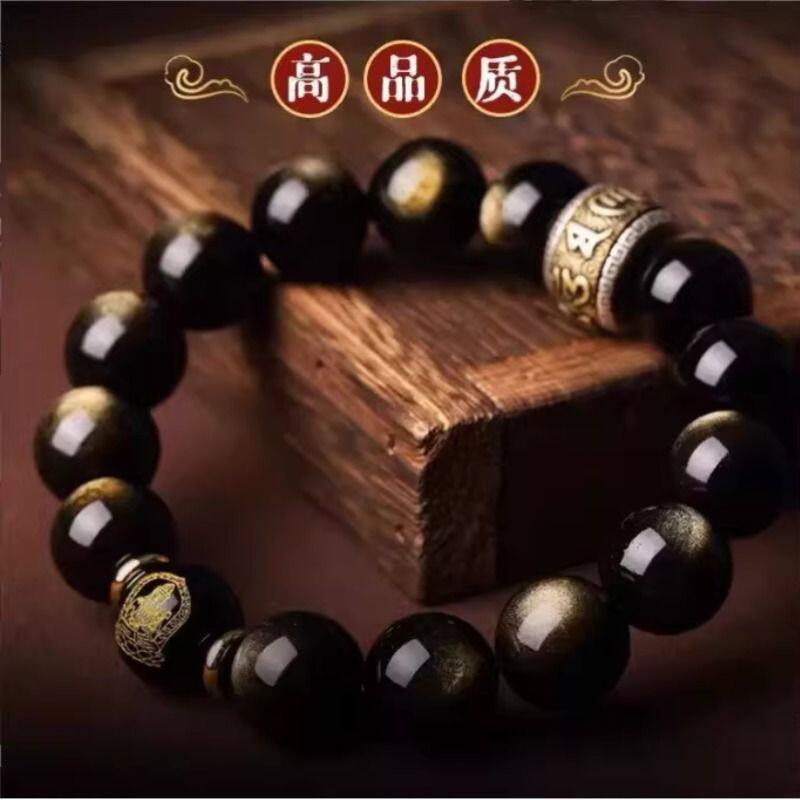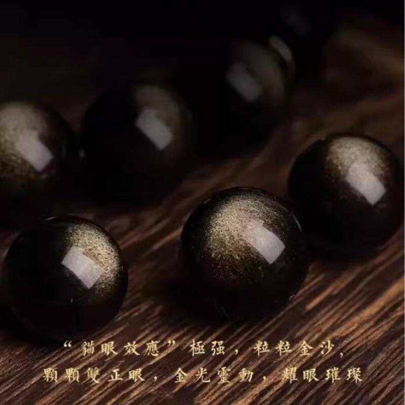 天然猫眼金曜石手串本命佛十二生肖佛珠黑曜石手链本命年男女同款