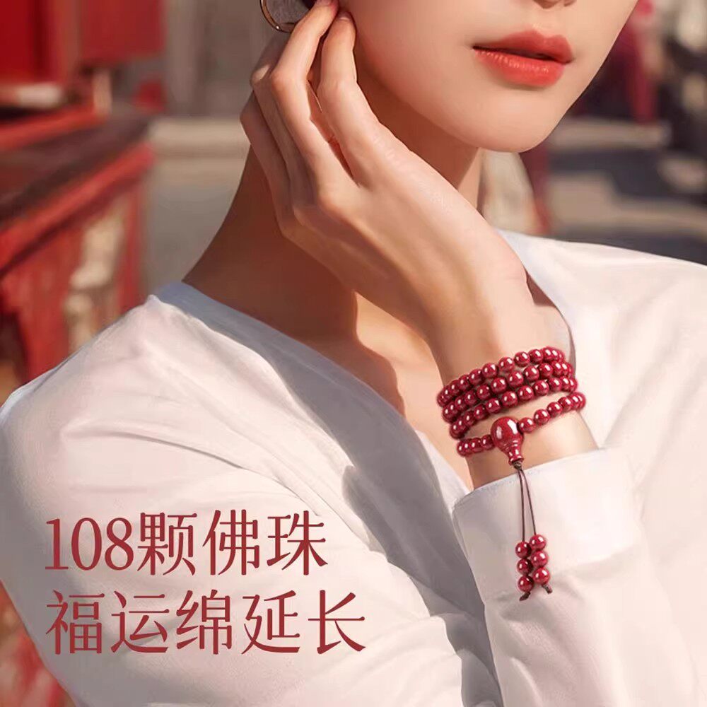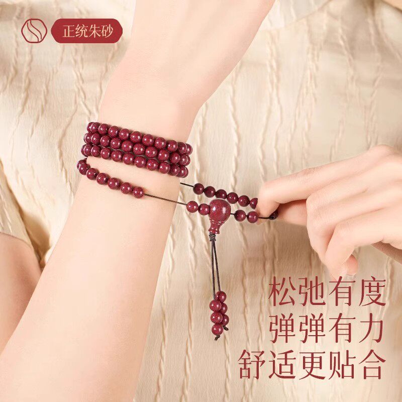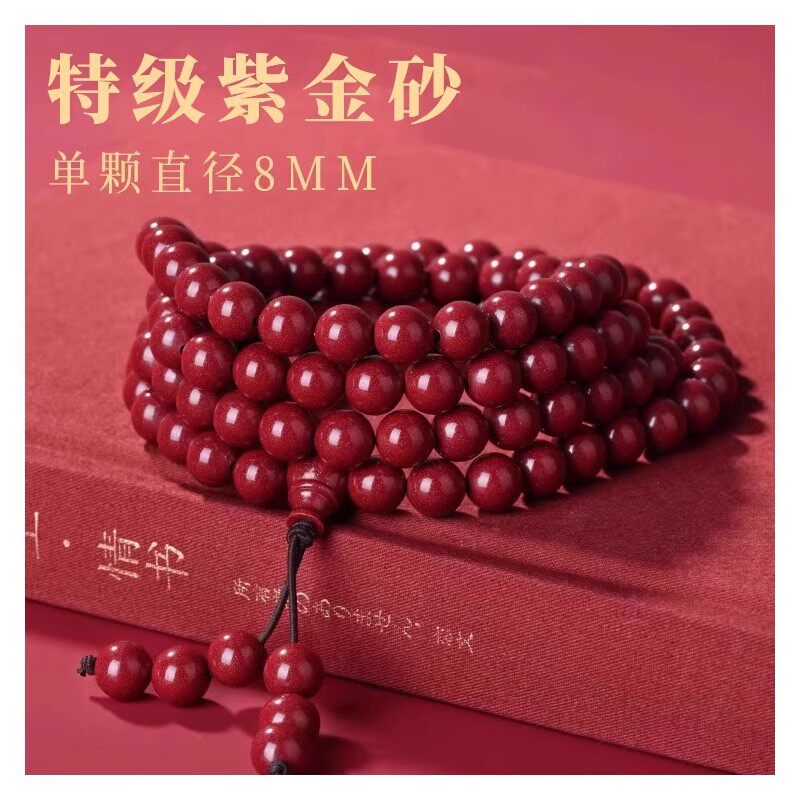 朱砂108颗佛珠手串男女款通用本命年手链原矿紫金砂好运