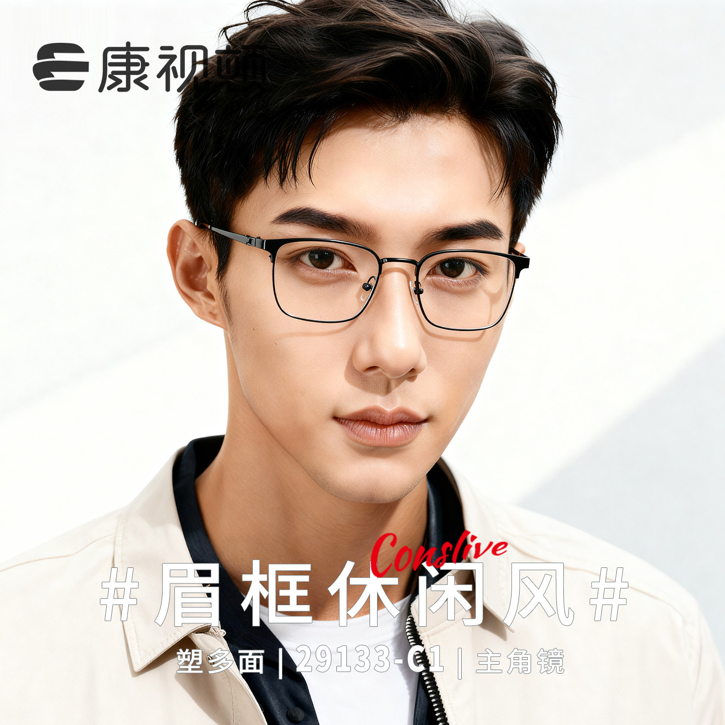 康视顿镜框超轻钛材近视眼镜架男士眉框商务方框光学镜框29133