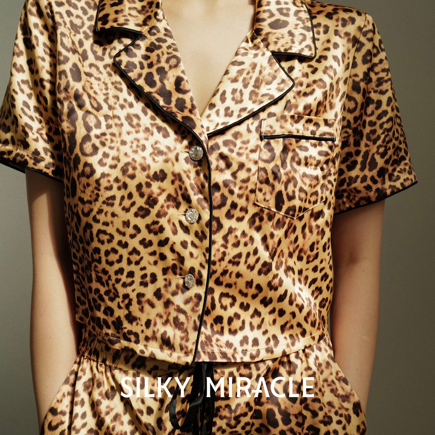 SILKY MIRACLE真丝豹纹睡衣FREE套装长裤桑蚕丝外穿辣妹家居服