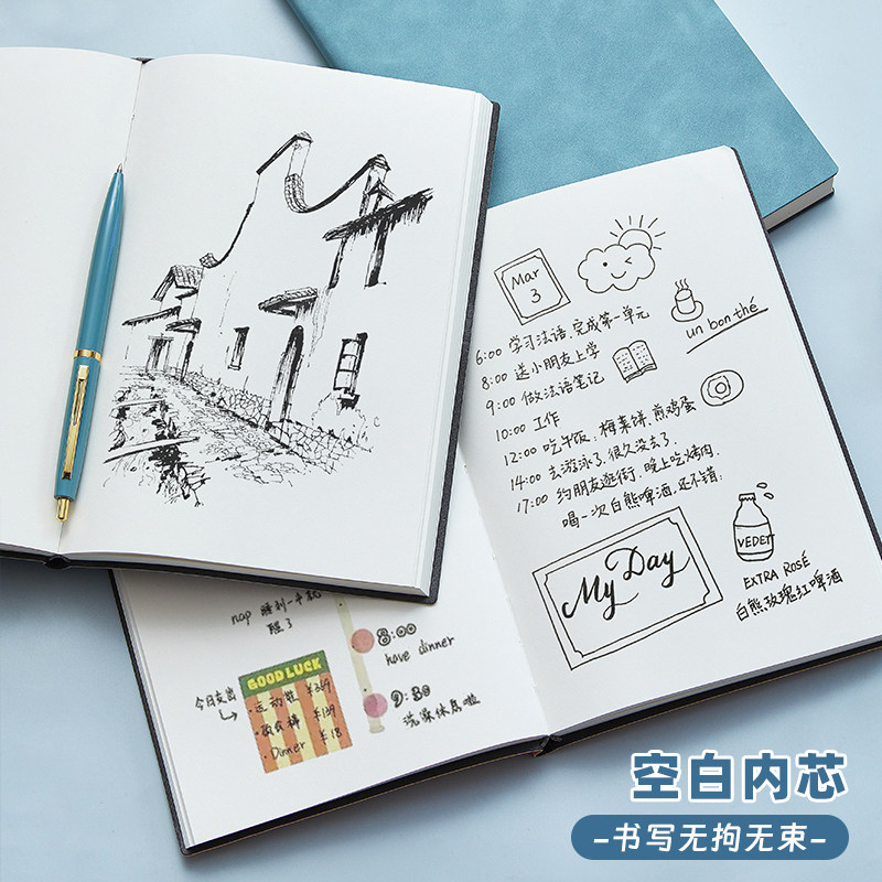 空白纸内页无格无线笔记本子厚A5文艺精致软皮面手绘画画素描美术大学生读书学习日记本草稿记事本简约ins风