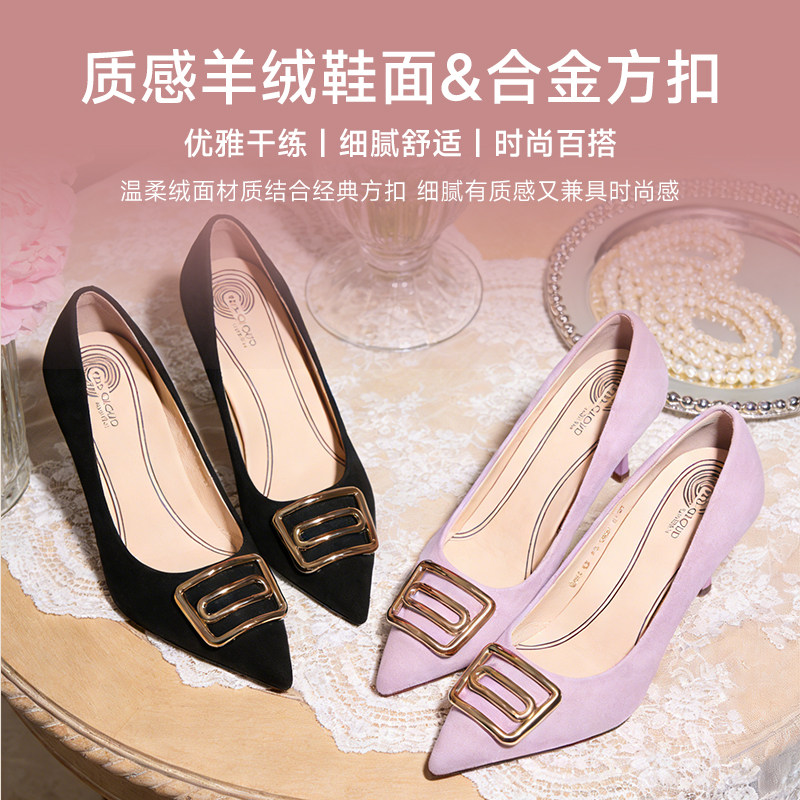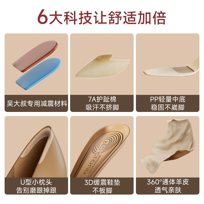 吴大叔2026新款高跟单鞋气质百搭舒适不累脚真皮缓震尖头浅口女鞋