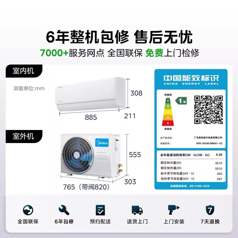 美的空调酷省电二代大1.5匹1匹一级能效变频冷暖家用挂机官方正品