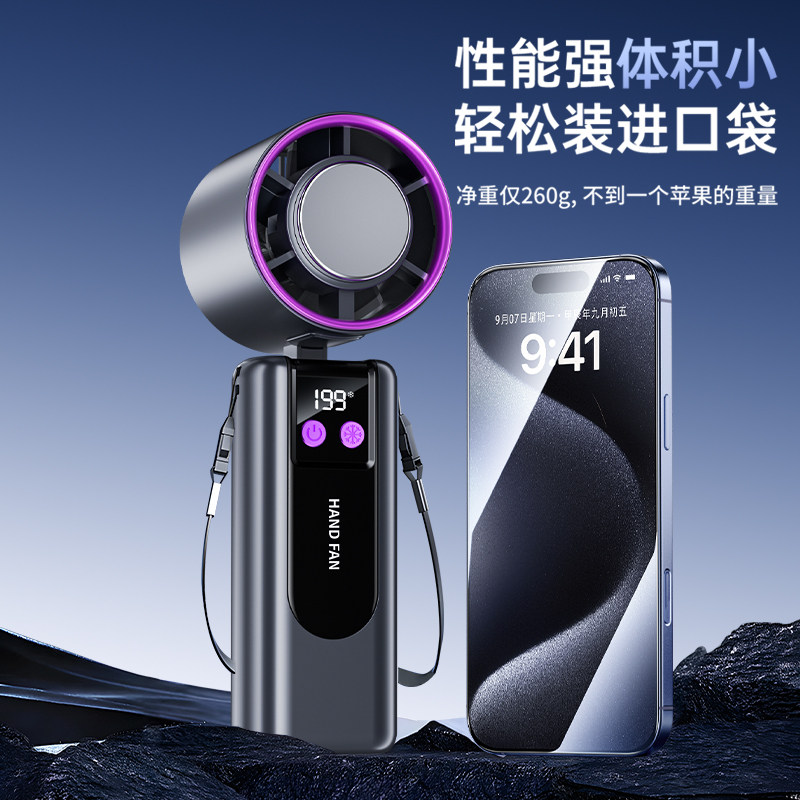 [已接入米家APP]超高速强力制冷手持风扇桌面挂脖静音充电学生迷你随身户外冰敷降温神器usb小型风扇2026新款