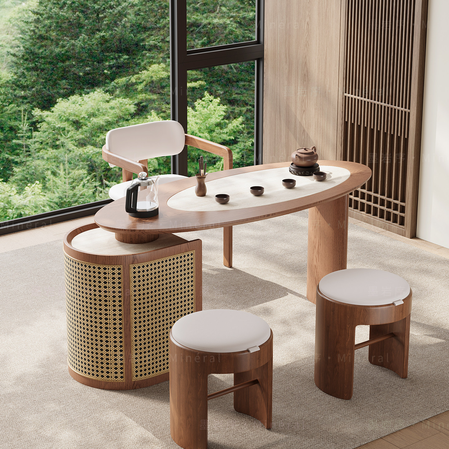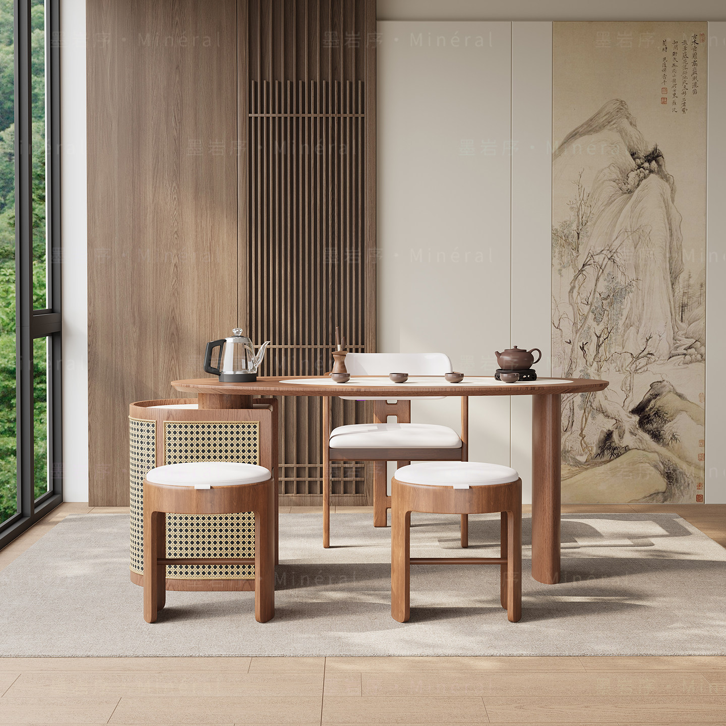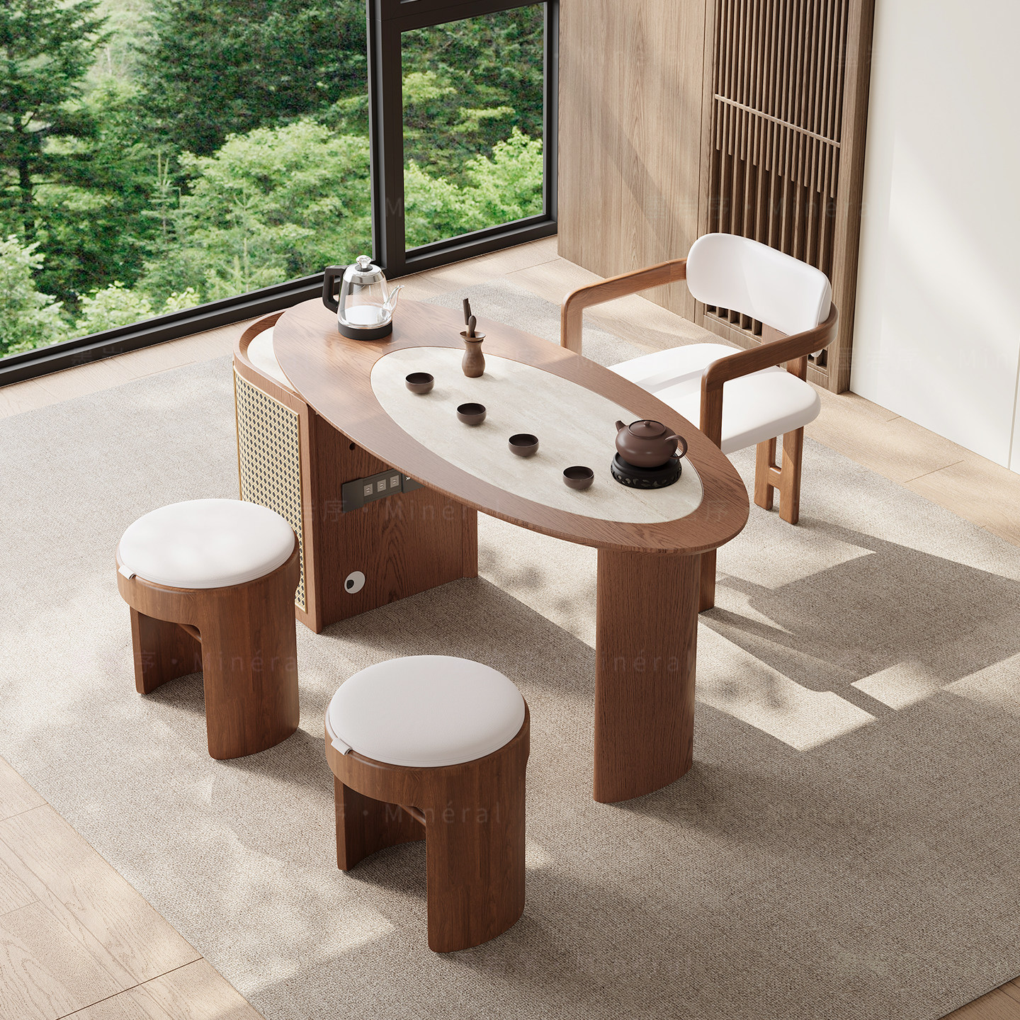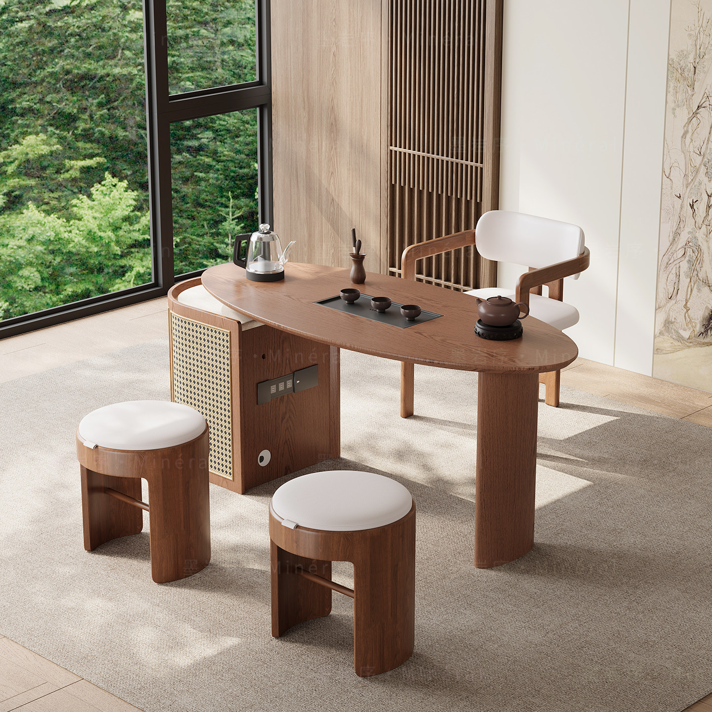 新中式阳台茶桌椅组合现代简约实木白蜡木小户型高端功夫茶台新款