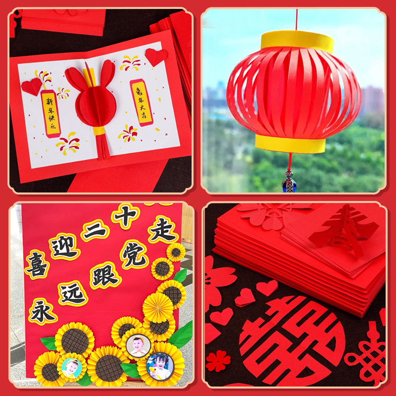 中国红卡纸a4红色手工硬卡纸黄色柠黄A4纸灯笼折扇柠檬黄色背景纸